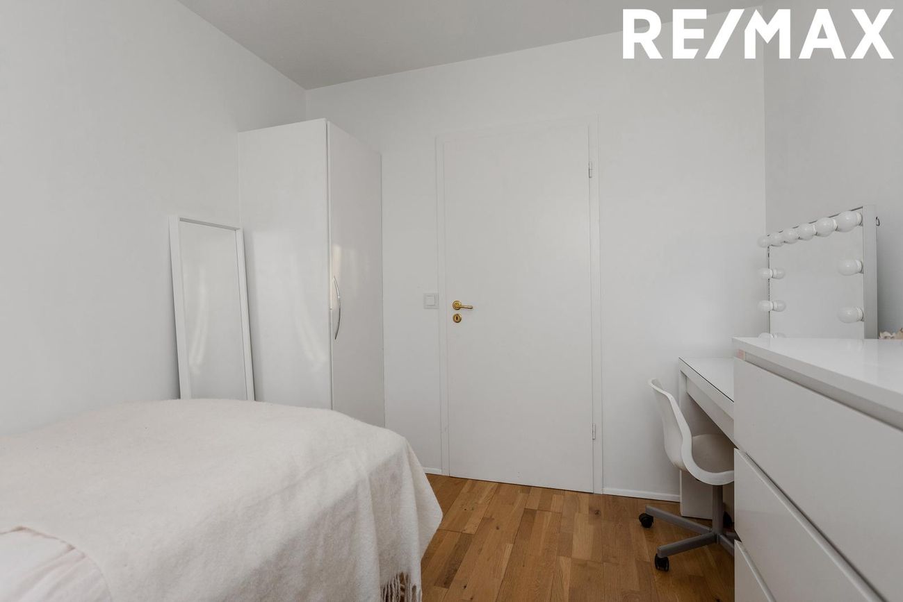 Herbergi 3: Parketi á gólfi, með fataskáp.