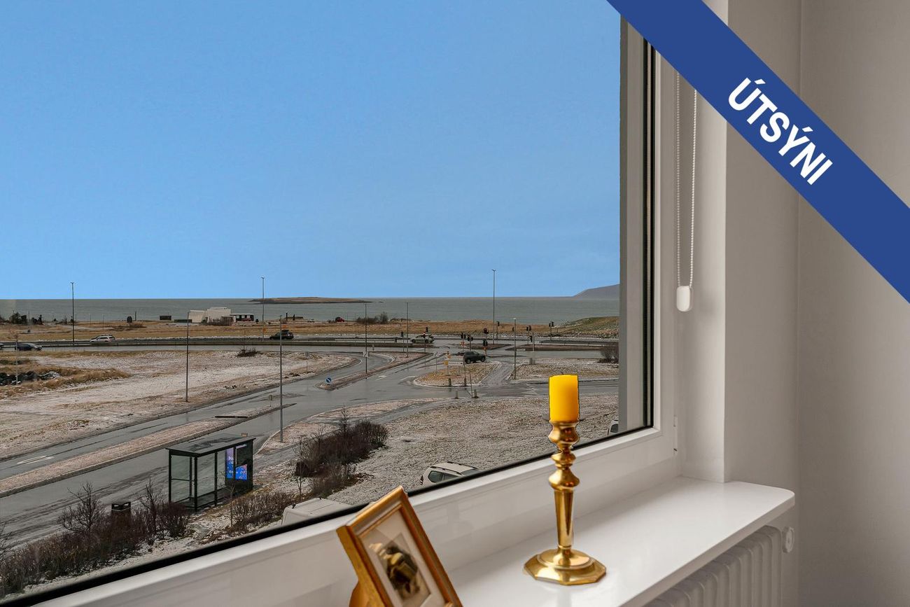 ægifagurt útsýni til vesturs yfir sundin úr stofu og til suðurs af svölum sem er útgengi á úr stofu.