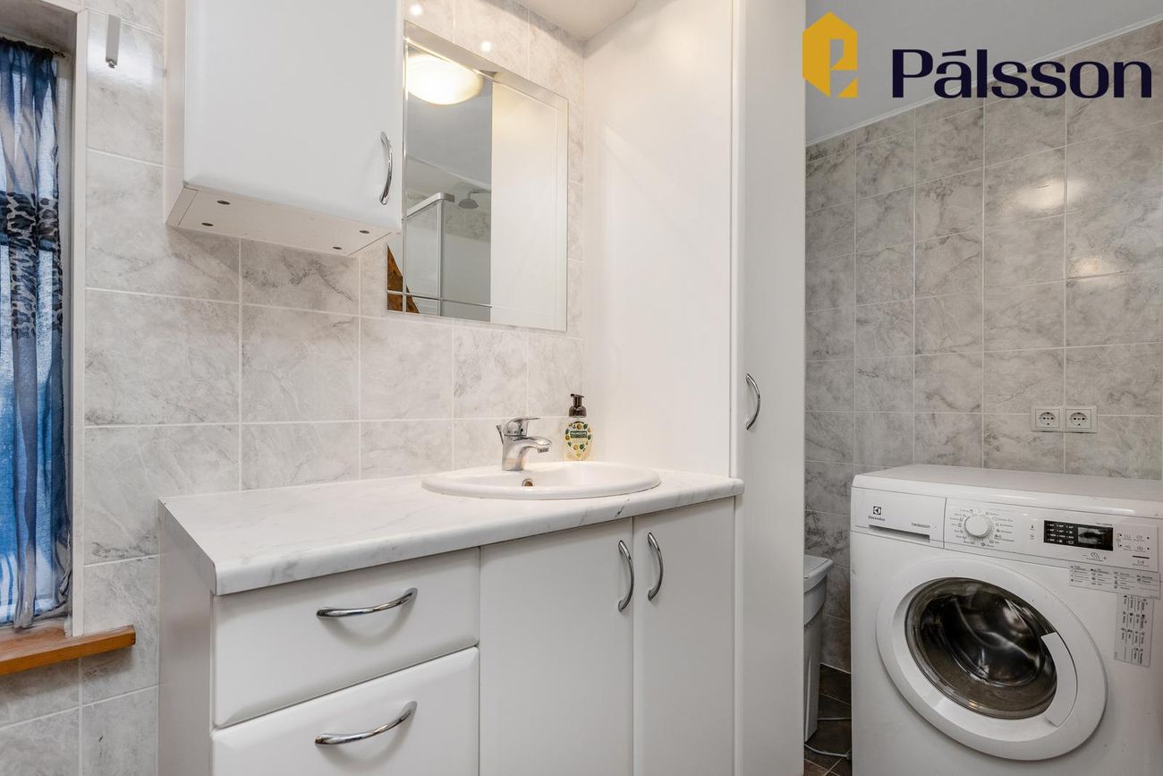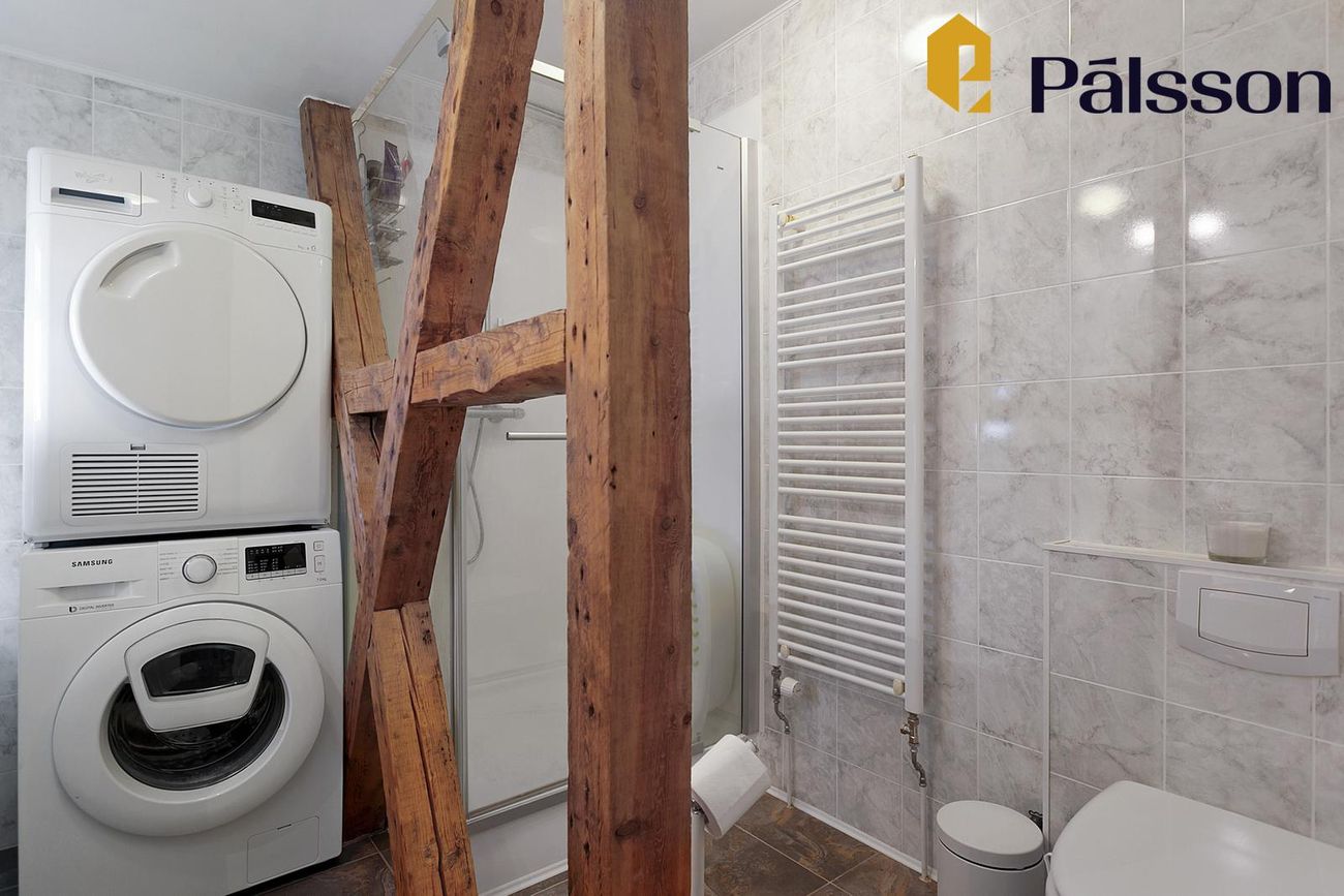 Tengi fyrir þvottavél og þurrkara á baðherbergjum.
