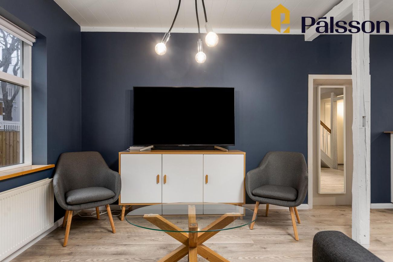 Húsið er 174 m² samkvæmt samþykktri teikningu og skiptist í þrjár íbúðareiningar með sérinngangi. Húsið hefur verið mikið endurnýjað og er afar vel staðsett.