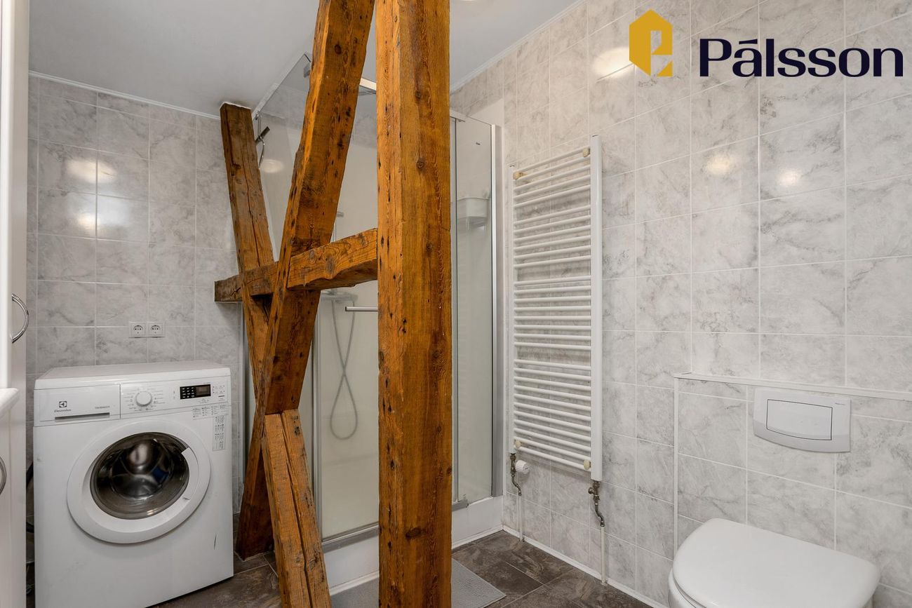 Köld geymsla undir stiga við inngang íbúðar. Geymslupláss undir súð í svefnherbergjum.