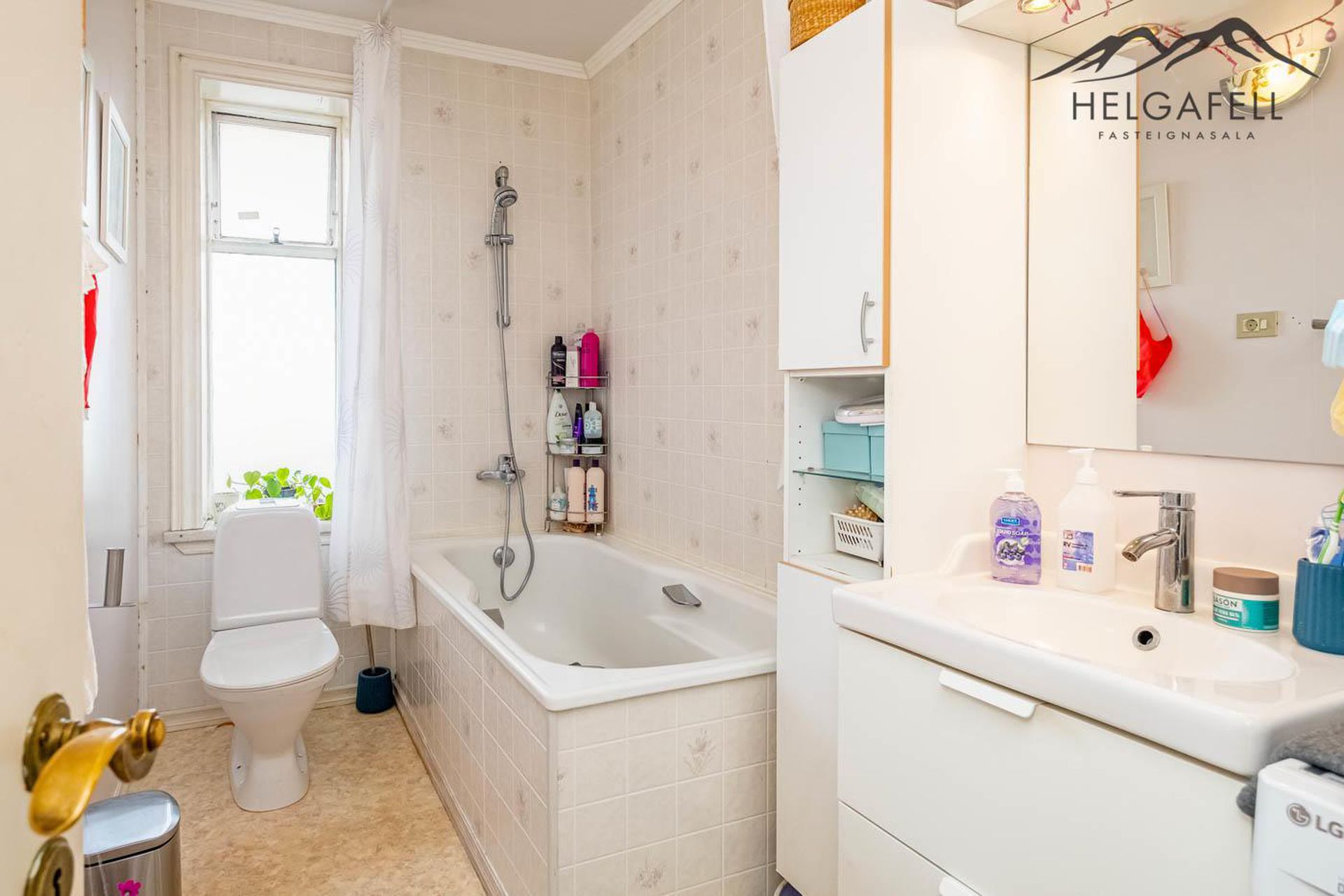 Helgafell fasteignasala og Hólmar Björn Sigþórsson löggiltur fasteignasali kynna góða og vel skipulagða 3 herbergja eign á frábærum stað í hjarta Reykjavíkur. Eignin er samkvæmt fasteignaskrá samtals 97,5 fm, þar af er íbúð 77,2 fm og 20,3 fm sér geymslu í kjallara . Um er að ræða skemmtilega íbúð í einu af elsta og glæsilegasta húsi Reykjavíkur. SMELLIÐ HÉR TIL AÐ FÁ SENT SÖLUYFIRLIT STRAXSkipulag eignar: Íbúðin skiptist í stofu, 2 svefnherbergi, eldhús, baðherbergi, gang og forstofu. Eignin er á 3. hæð. Aukin lofthæð er í öllum rýmum nema eldhúsi og baðherbergi. Nánari lýsing:Forstofa: Komið er inn í forstofu/gang með parketi á gólfi og fatahengi.Stofan/borðstofa: Rúmgóða stofa með parketi á gólfi.Hjónaherbergi: Rúmgott svefnherbergi með parket á gólfi. Nýr ofn. Svefnherbergi 2: Gott svefnherbergi með góðum fataskáp, parket á gólfi.Baðherbergi: Baðherbergi er klætt með flísaplötum, dúkur á gólfi, baðkar, góðri innrétting og tengi fyrir þvottavél.Eldhús: Eldhús með góðri innréttingu, ofn, helluborð, kork flísar á gólfi.Geymsla: Í kjallara er 20,3 fm. geymsla. Sameign: Snyrtilegur stigagangur með teppi á gólfi. Í kjallara eru geymslur og sameiginlegur kyndiklefi. Sameiginlegar svalir til suðurs frá stigagangi og sameiginleg geymsla undir stiga á neðstu hæð. Útgengi er á baklóð er í gegnum sund á suðurhlið hússins. Lóð: Sameiginleg 339,5 fm. eignarlóð.Að utan er húsið allt hið glæsilegasta og hefur húsið að sögn eiganda fengið gott viðhald m.a. er nýlega búið að skipta um þakjárn og mála húsið að utan. Húsið er byggt árið 1920 og hannað af Einari Erlendssyni arkitekt.Frábærlega vel staðsett eign með fallegu útsýni í hjarta borgarinnar. Stutt er í marga bestu veitingastaðir borgarinnar, í verslanir, skóla og alla almenn þjónustu.Vefslóð á frétt frá EFLU verkfræðistofu vegna viðgerðar á Laugavegi 49 má finna HÉR.Allar nánari upplýsingar og bókun á skoðun veitir Hólmar Björn Sigþórsson, löggiltur fasteignasali og félagsmaður í Félagi fasteignasala í síma 893 3276 eða á netfangið .----------------------------------------------------------Heimasíða Helgafells fasteignasöluFacebook síða Helgafells- Hafðu samband og við verðmetum eign þína þér að kostnaðarlausu, þó kannski fyrir einn kaffibolla -Gjöld sem kaupandi þarf að standa straum af vegna kaupa á fasteign:1. Stimpilgjald af kaupsamningi - 0,8% af fasteignamati fyrir einstaklinga (0,4% fyrir fyrstu kaupendur) og 1,6% fyrir lögaðila.2. Þinglýsingargjald af kaupsamningi, veðskuldabréfi, mögulegu veðleyfi o.fl. - 2.500 kr. af hverju skjali.3. Lántökugjald lánastofnunar - almennt í kringum 50þ., oft lægra eða ekkert lántökugjald fyrir fyrstu kaup. Nánari upplýsingar t.d. á heimasíðum lánastofnana.4. Þjónustusamningur milli kaupanda og fasteignasölu - Kr. 68.820,- m/vsk.