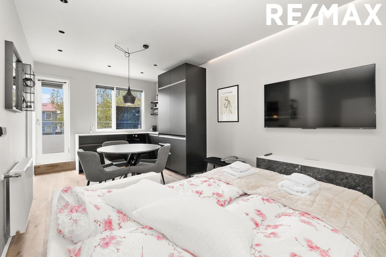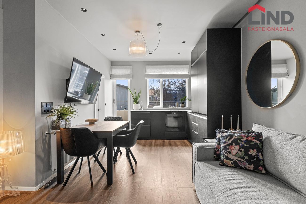 vinsælum stað við Laugaveg þar sem stutt er í alla helstu þjónustu, verslanir, veitingastaði og mannlíf miðbæjarins. Einnig er stutt í sundlaug og skóla.