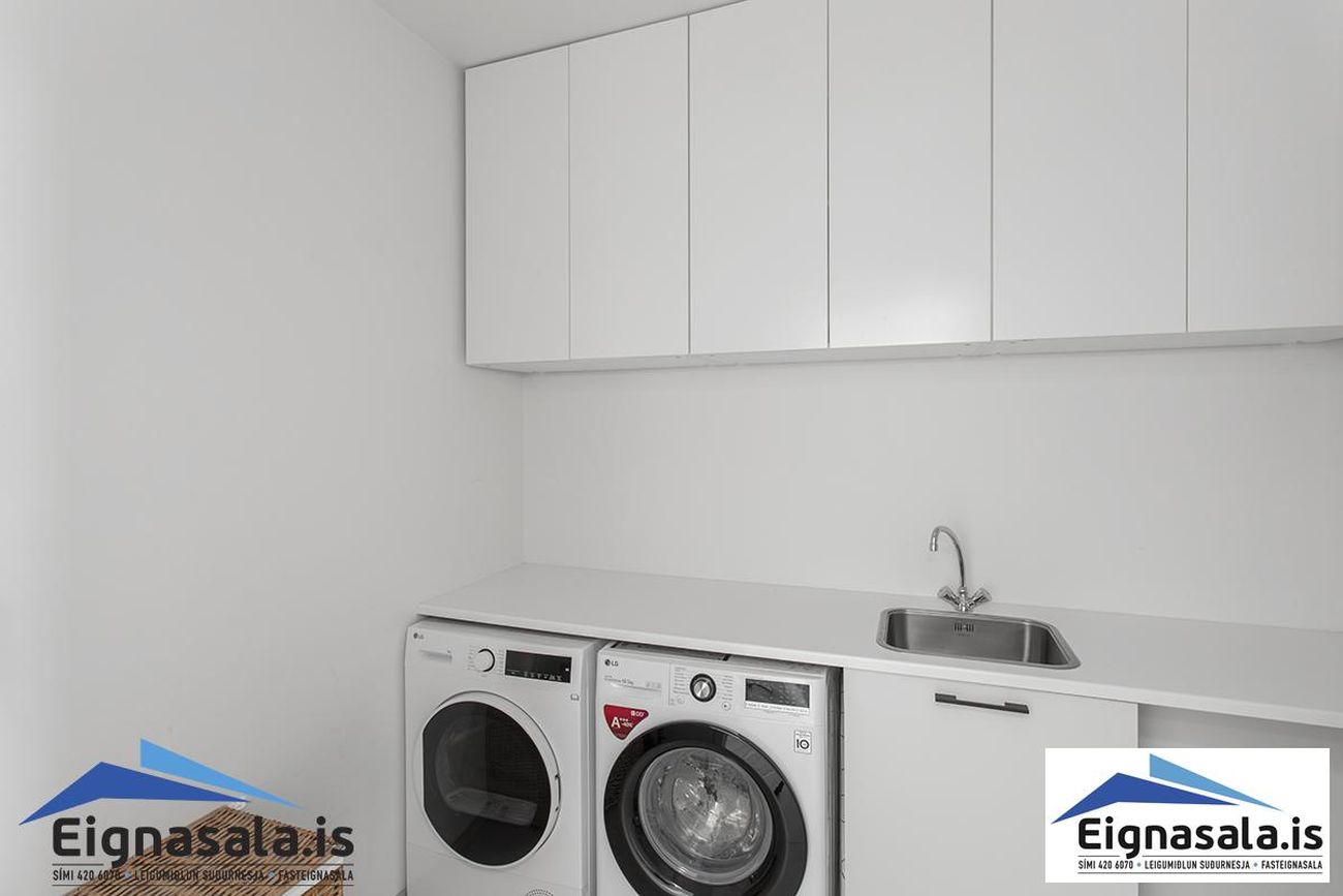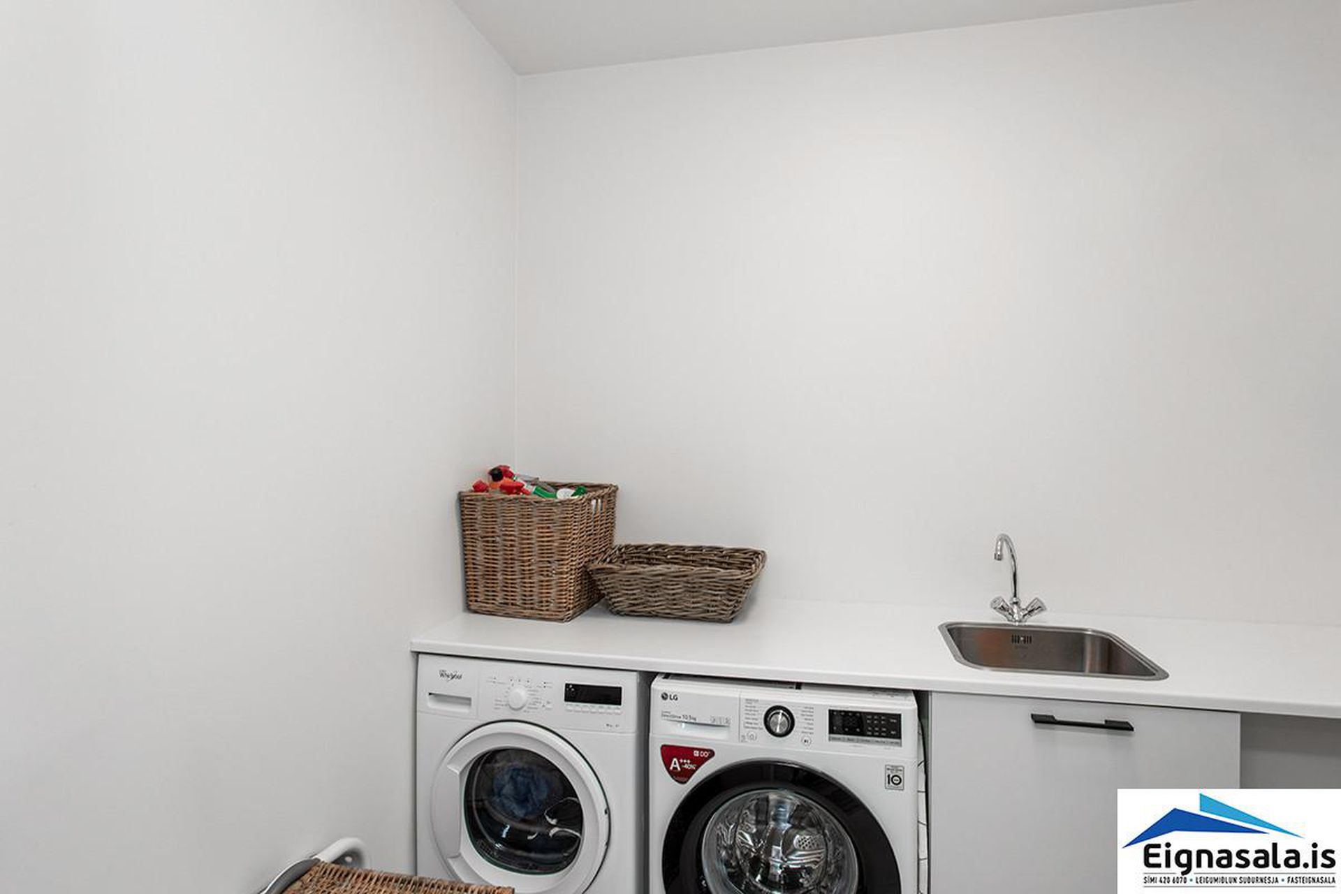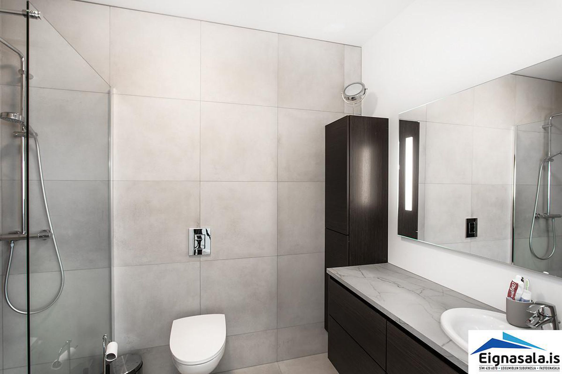 Hreinlætistæki eru frá Laufen og blöndunartæki frá Grohe. Í öllum eignum er sturta með hitastýrðu blöndunartæki, vegghengt salerni og handlaug með einnar handar blöndunartækjum. Einnig er handklæðaofn á baði. Í eldhúsi er niðurfelldur stálvaskur og einnar handar blöndunartæki. Í þvottaherbergi er ræstivaskur ásamt tengi fyrir þvottavél og þurrkara. Lyfjaskápur, reykskynjari, slökkvitæki og eldvarnarteppi fylgir hverri eign.