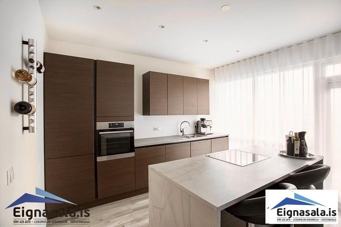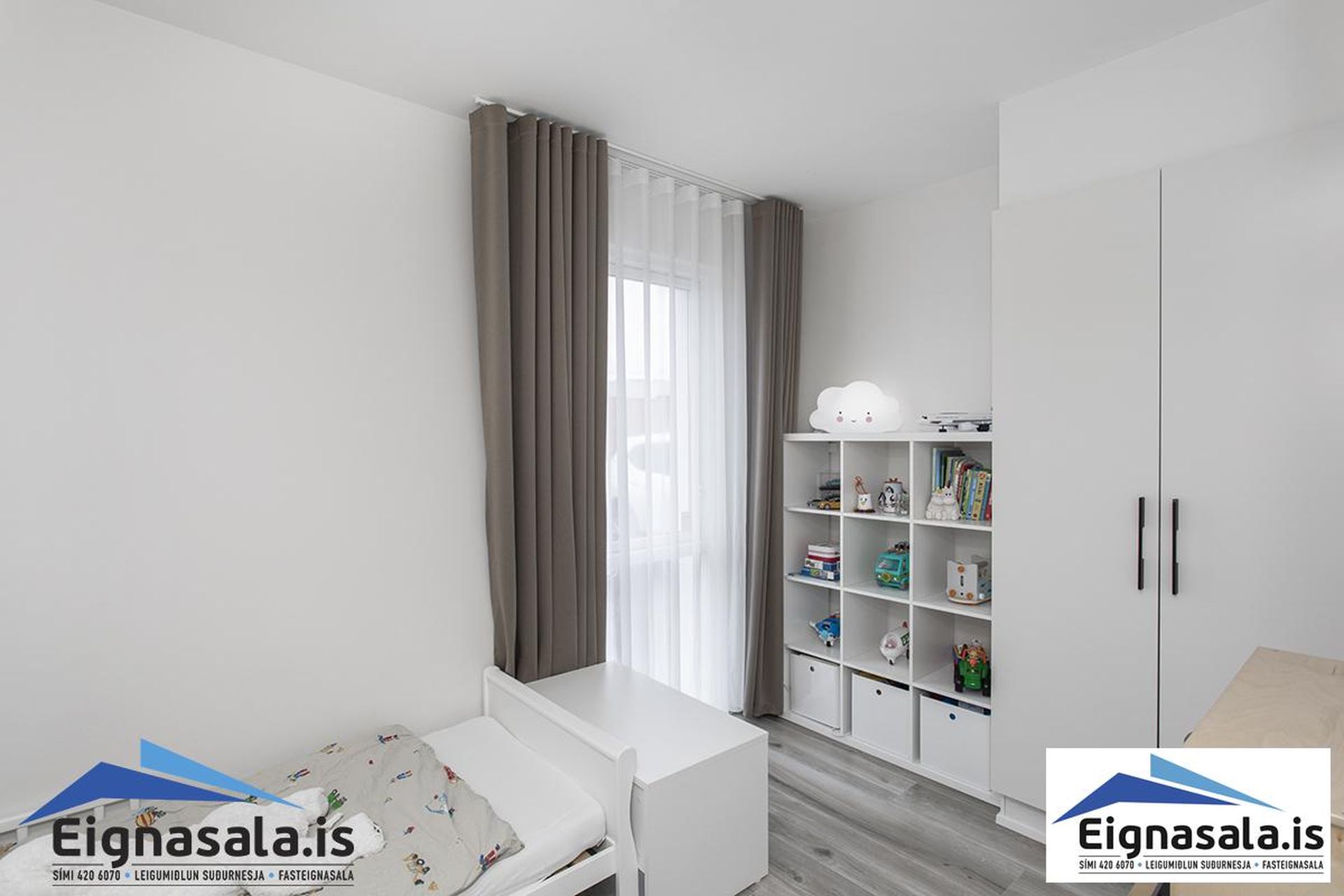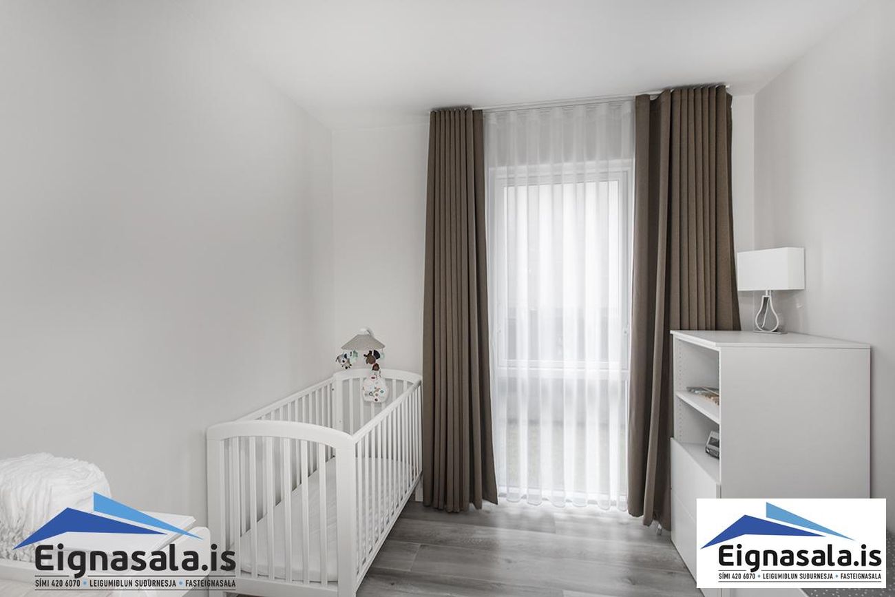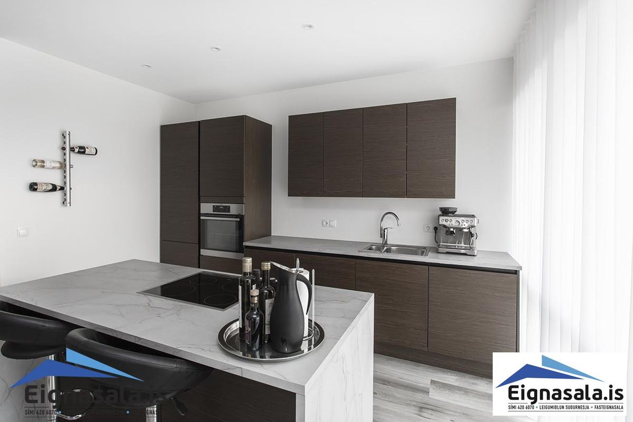 Sérsmíðaðar innréttingar eru á eldhúsi, baði og þvottahúsi sem og fataskápar og eru innréttingarnar úr reyktri eik frá Ormsson/HTH og fataskápar eru hvítir frá Ormsson/HTH. Innihurðar eru sprautulakkaðar hvítar og koma frá Birgisson. Eldhústæki sem eru bökunarofn og helluborð eru af gerðinni AEG frá Ormsson, uppþvottavél og ísskápur fylgja