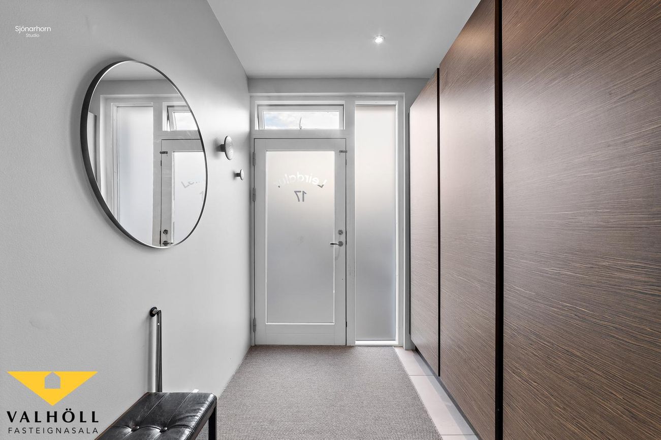 Eigininni fylgja tvö bílastæði hleðslustöð. Tæknirými er fyrir aftan bílskúr neðri hæðar.