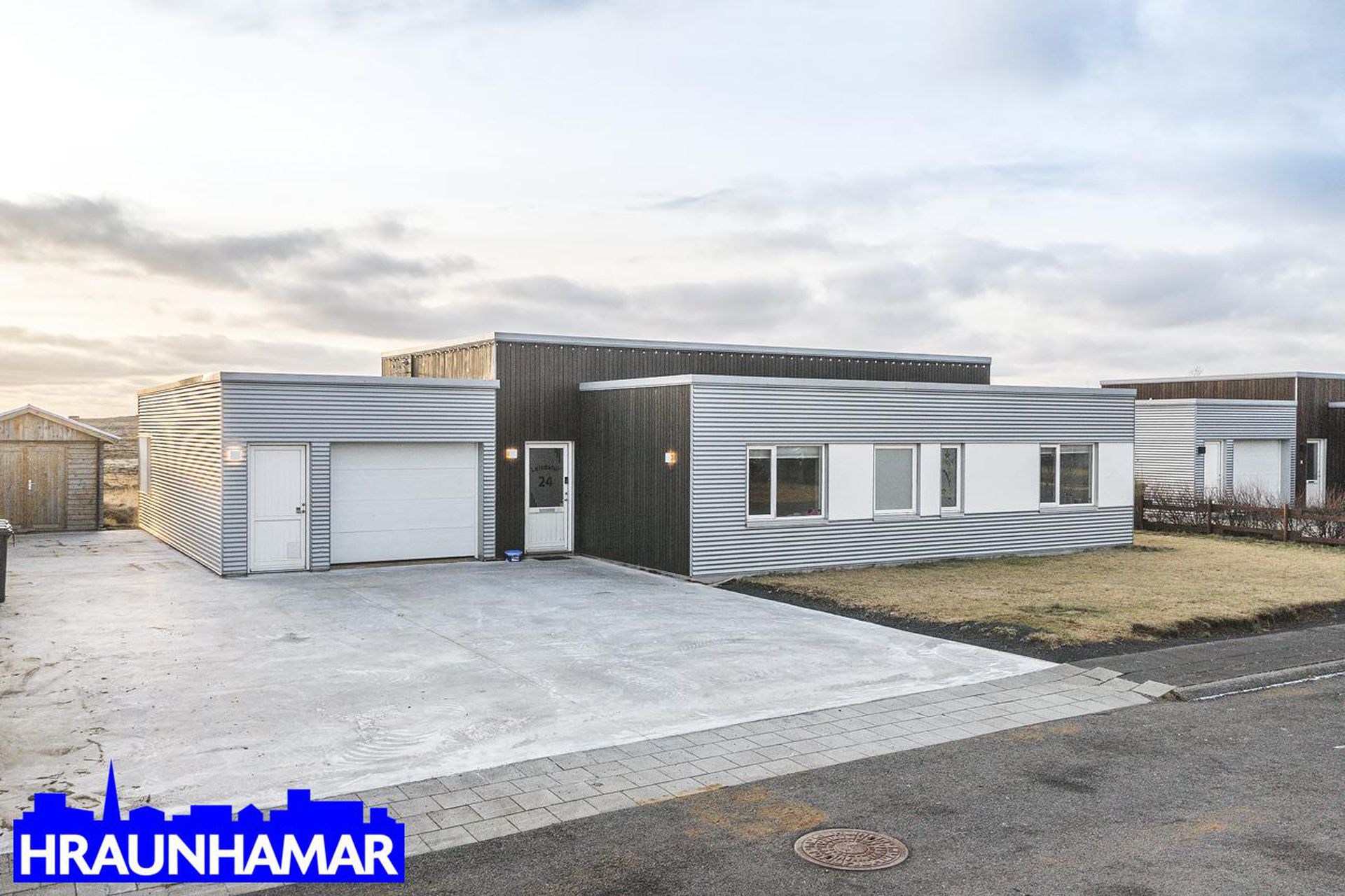 Hraunhamar fasteignasala kynnir: Glæsilegt, fullbúið og nýtískulegt einbýli á einni hæð með innb. bílskúr samtals 190,1 fm. Húsið stendur á frábærum stað í bænum, (Vogar Vatnsleysustr.) Jaðarlóð í enda botnlanga. Óbyggt svæði við húsið og mikið útsýni.