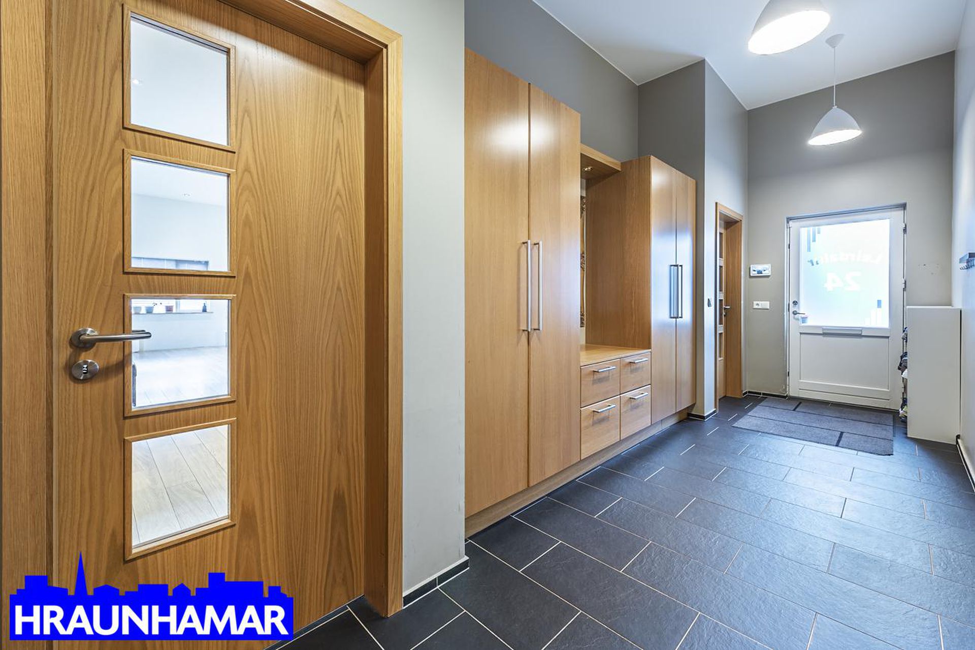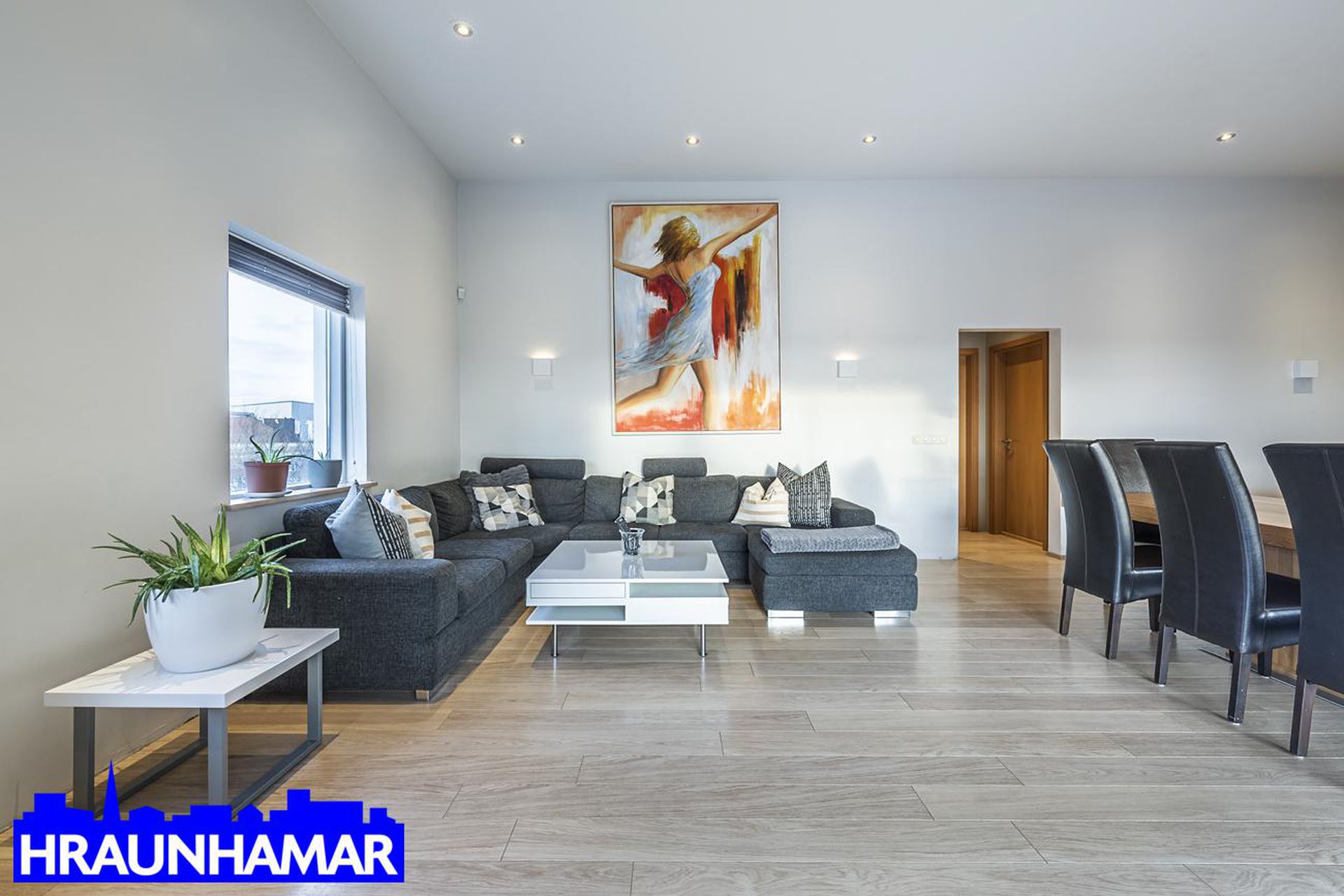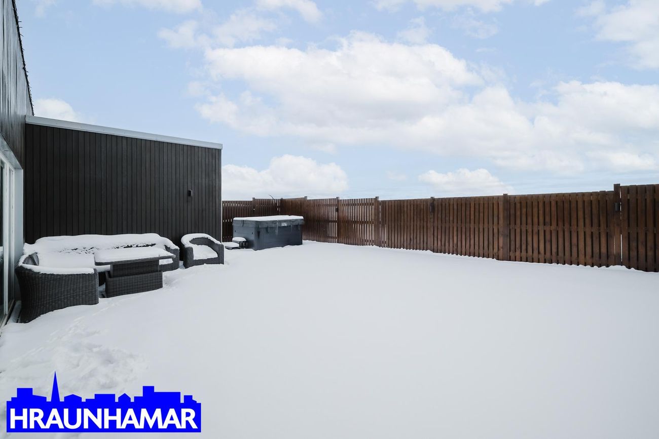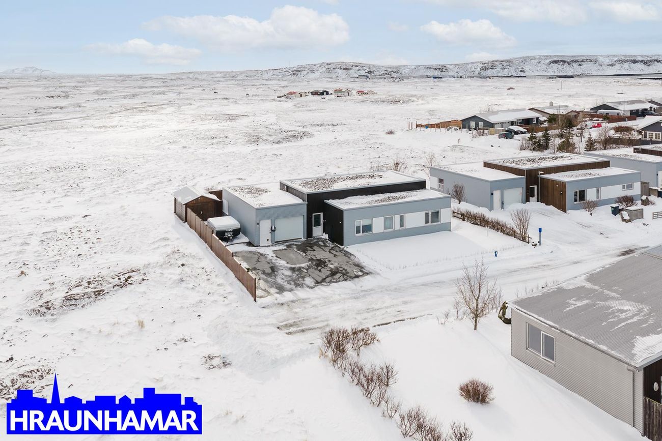 Mikil lofthæð er í húsinu og stórir gluggar. Fjögur til fimm svefnherbergi ofl. Pallur afgirtur í suður er óvenju stór. Allar innréttingar eru sérsmíðaðar frá HTH ehf (ljós eik). Hiti í gólfum. Nýlegt þráðlaust danfoss hitakerfi. Nýleg led lýsing.
