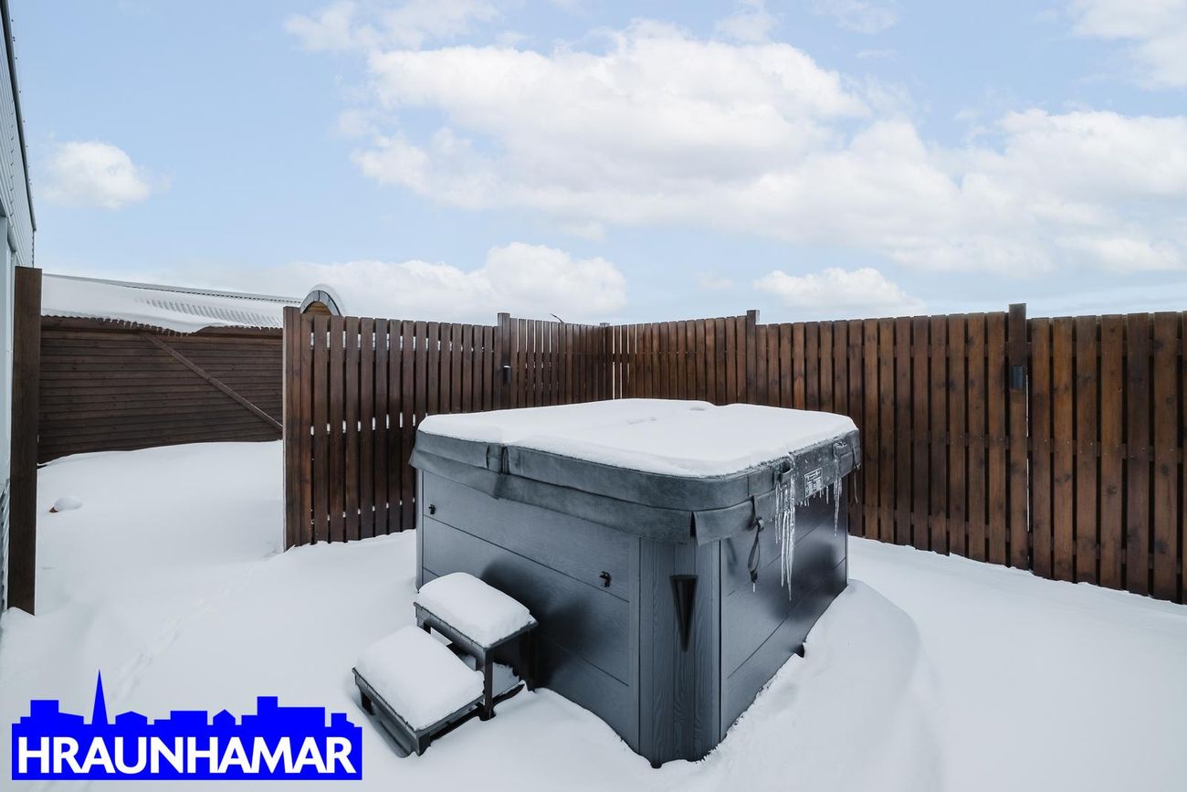 Nýlega steypt rúmgott bílaplan. Nýlegt saunahús og rafmagnspottur á 200 fm suður veröndinni. Húsið skiptist m.a. þannig: Rúmgóð