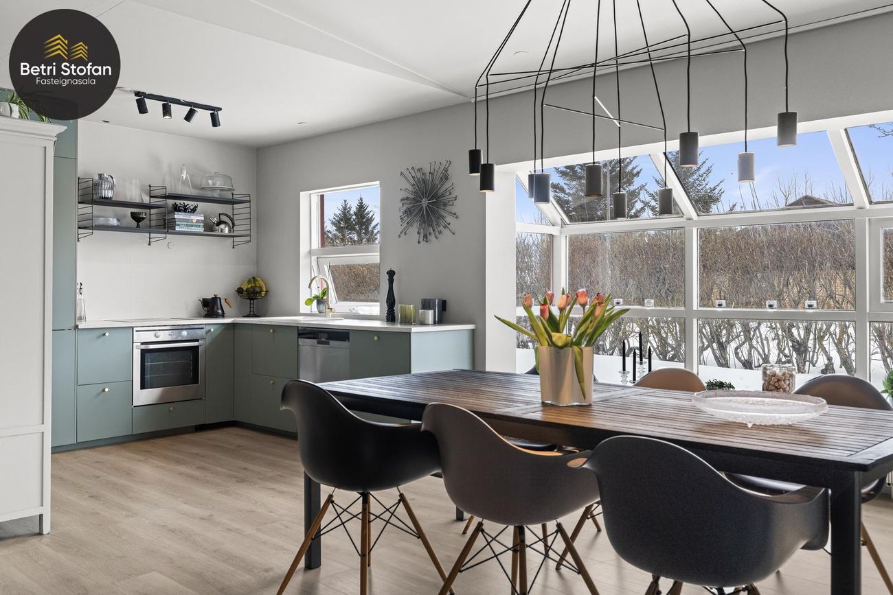 Borðstofa: Opin og í góðri tengingu við bæði stofu og eldhús. Fallegur gluggi með djúpri gluggakistu sem getur nýst sem bekkur.