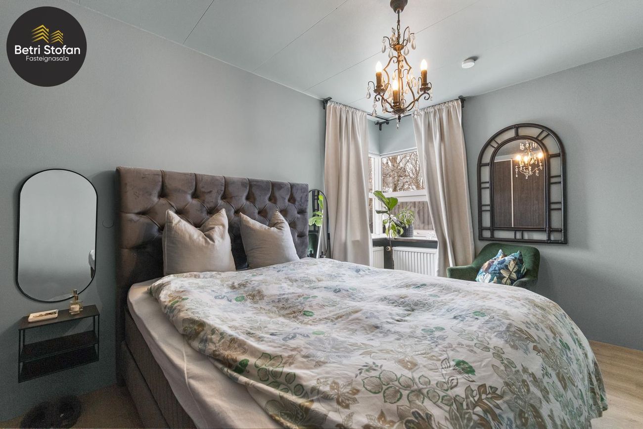 Svefnherbergi II: Innaf herbergjagangi. Rúmgott með tvöföldum fataskáp.