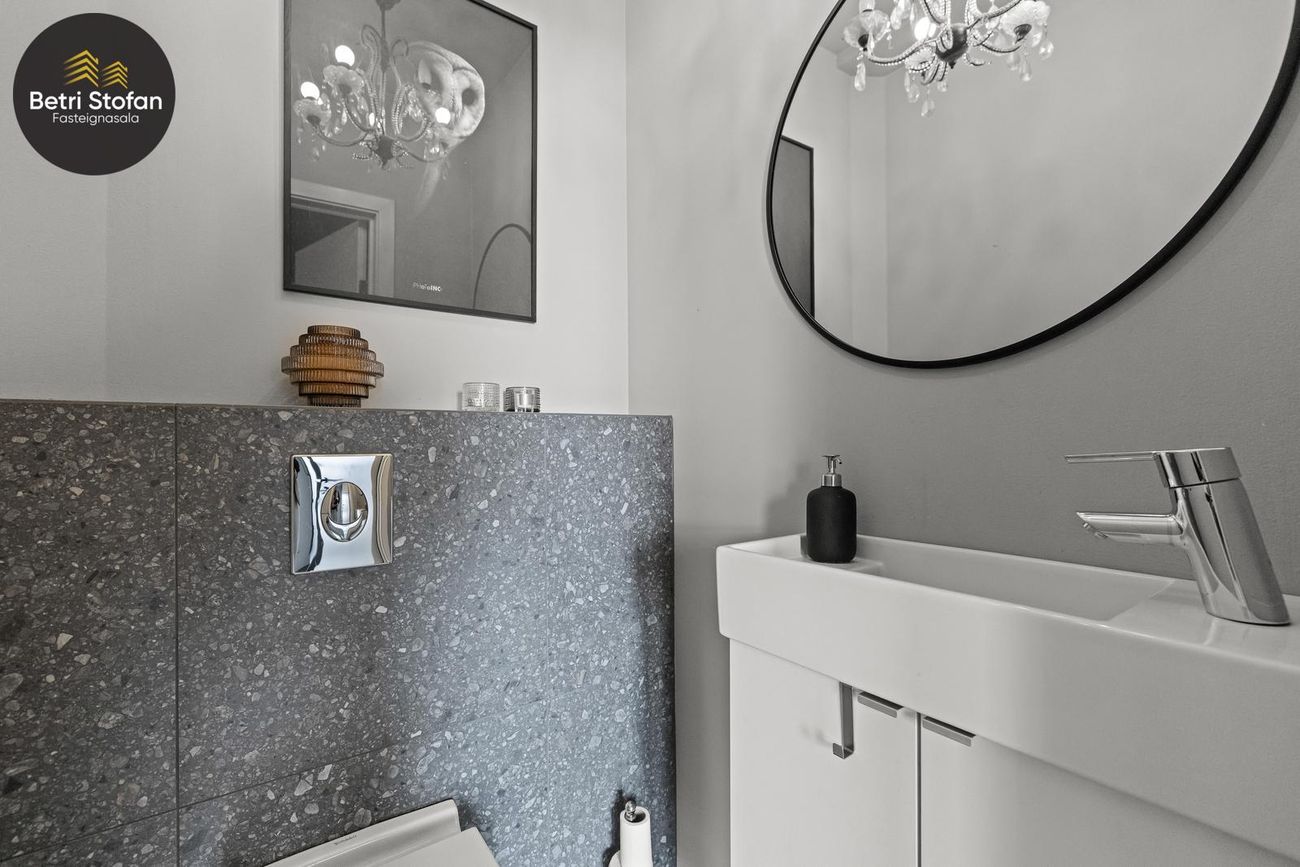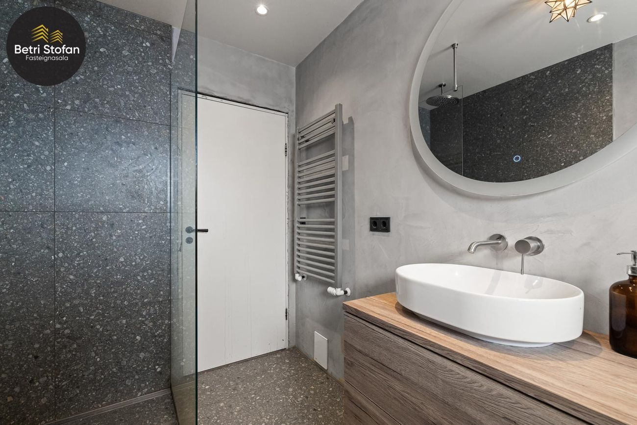 Baðherbergi: Standsett árið 2021 á afar vandaðan og smekklegan máta. "Walk in" sturta með innbyggðum blöndunartækjum og glervegg. frístandandi baðkar með innbyggðum blöndunartækjum. Baðinnrétting með skúffum, fallegum borðvask, innbyggðum blöndunartækjum og stórum fallegum hringlaga spegli með innbyggðri lýsingu fyrir ofan vask.