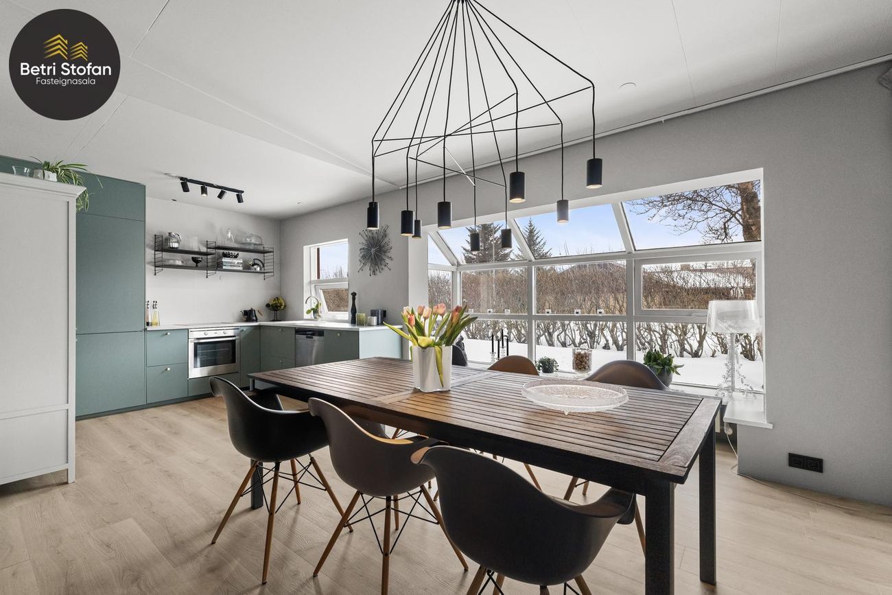 Borðstofa: Opin og í góðri tengingu við bæði stofu og eldhús. Fallegur gluggi með djúpri gluggakistu sem getur nýst sem bekkur.