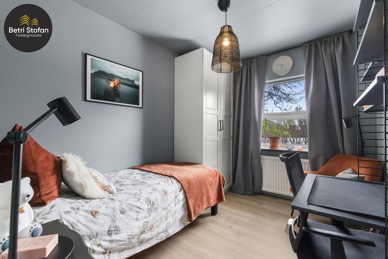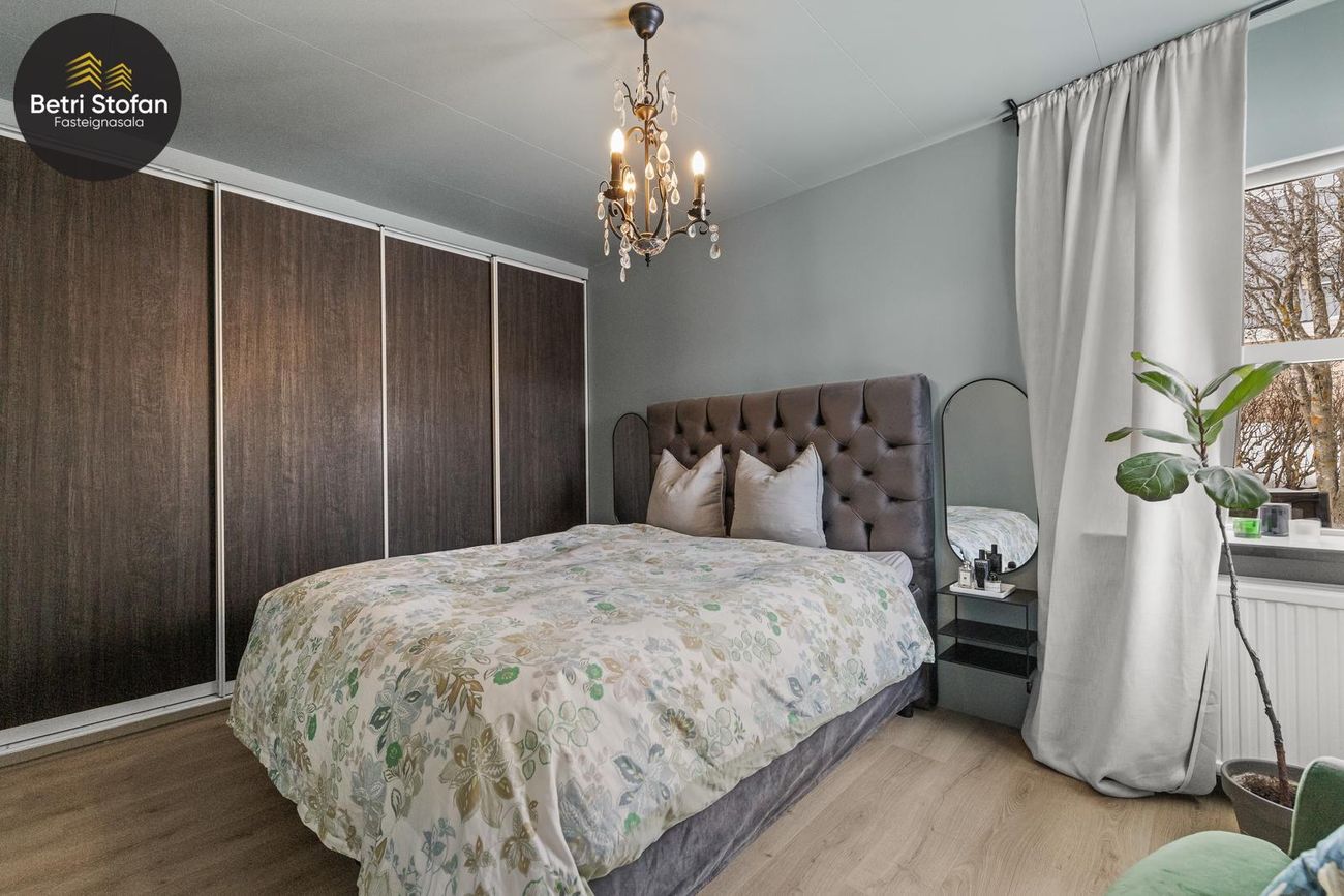 Svefnherbergi II: Innaf herbergjagangi. Rúmgott með tvöföldum fataskáp.