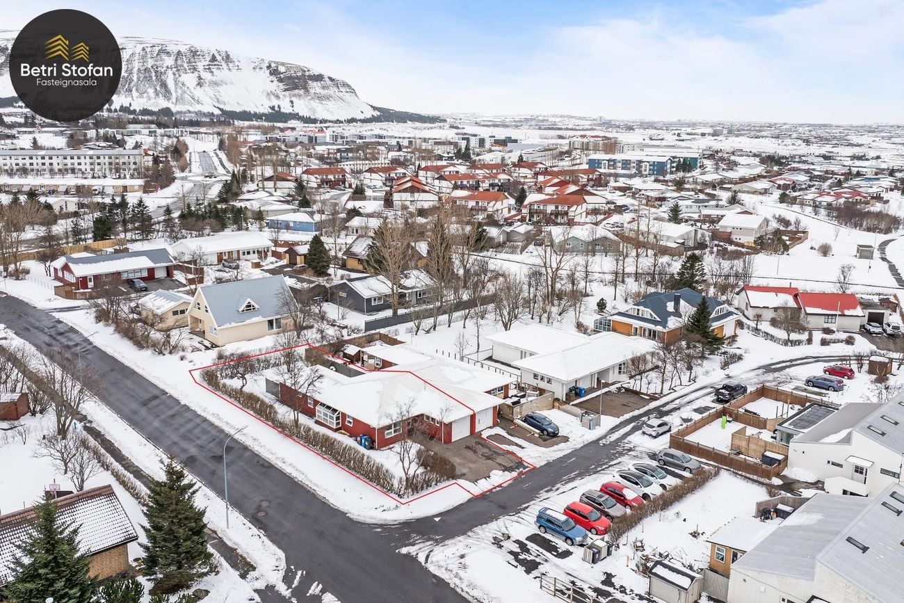 Aðkoma: Innkeyrslan að húsi er hellulögð með snjóbræðslukerfi. Leiðir beint að aðalinngangi og bílskúr, sem gerir alla aðkomu að húsinu mjög þægilega og aðgengilega. Pláss fyrir 2-3 bíla á bílaplani.