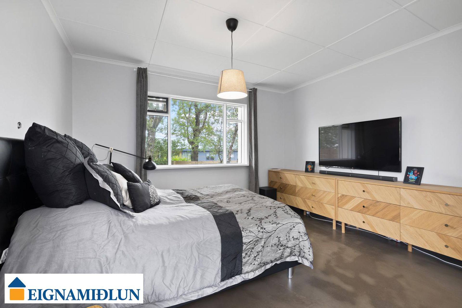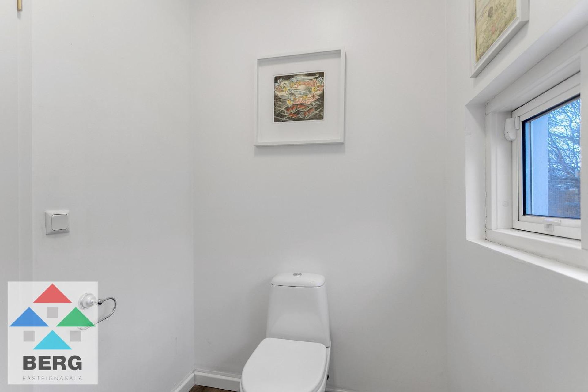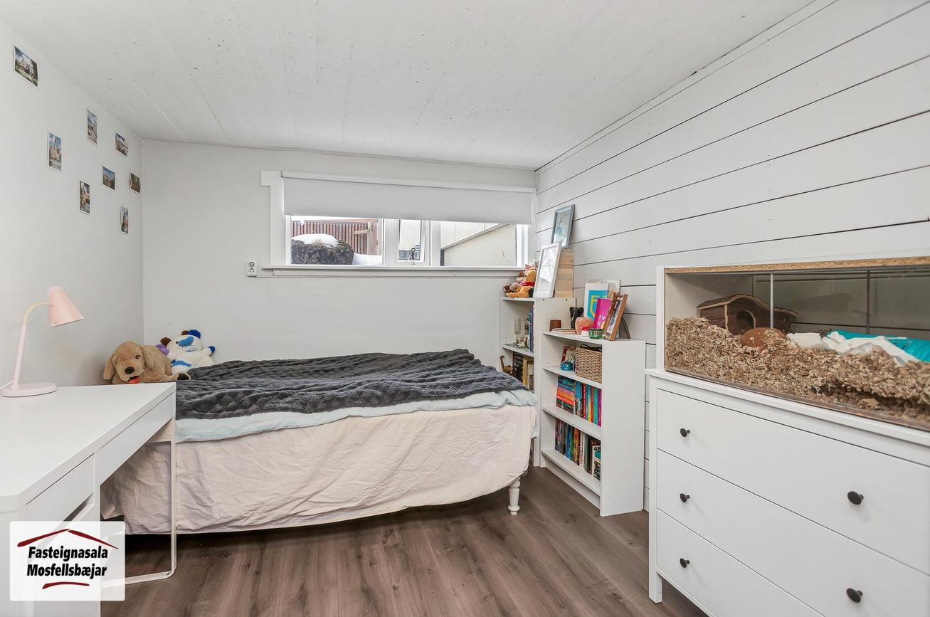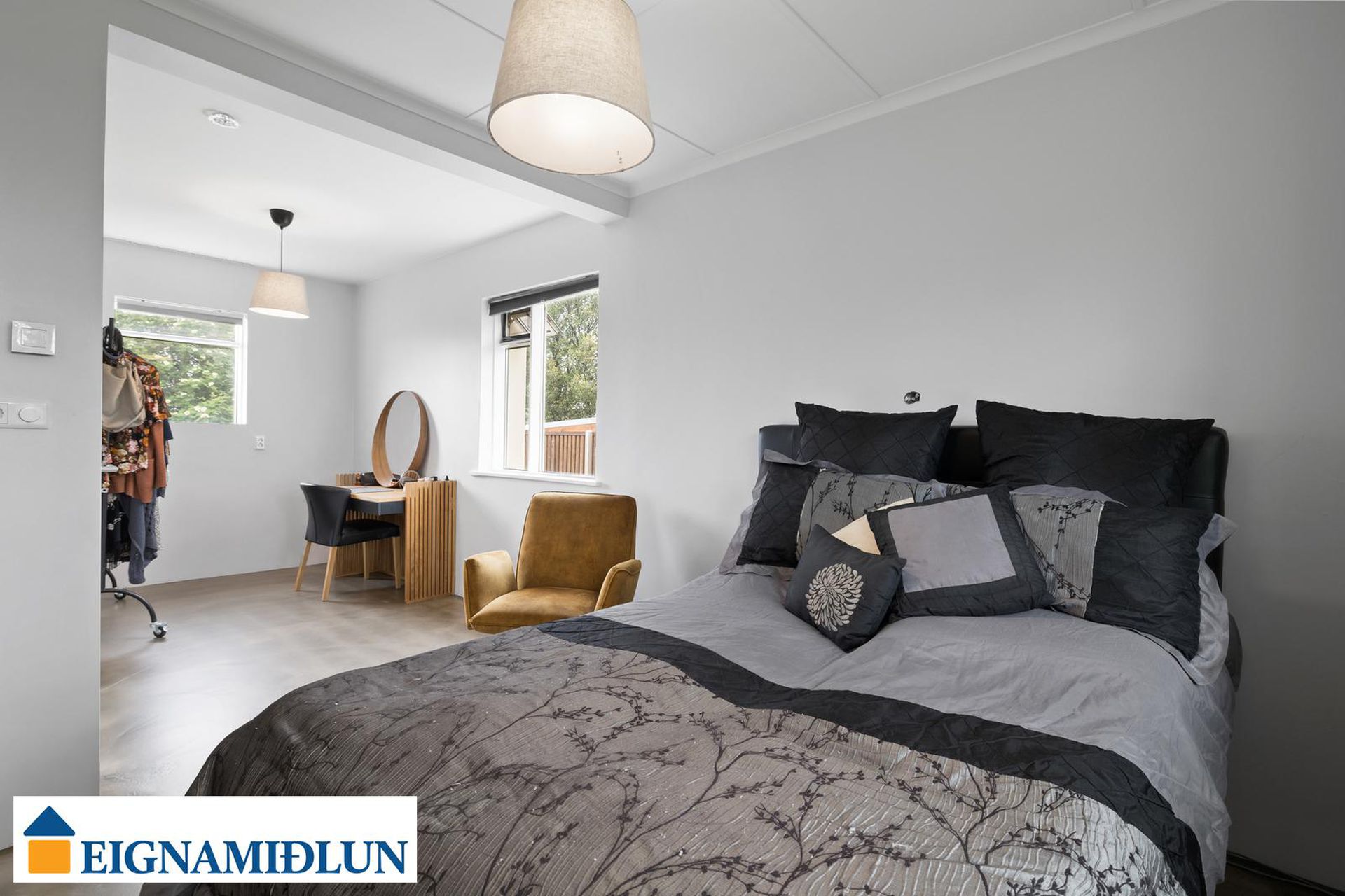 Neðri hæð er með svefnherbergi og sérbaðherbergi með sturtu og salerni. Herbergið er aðskilið frá aðalhæðinni og hentar vel í útleigu eða sem unglingaherbergi.