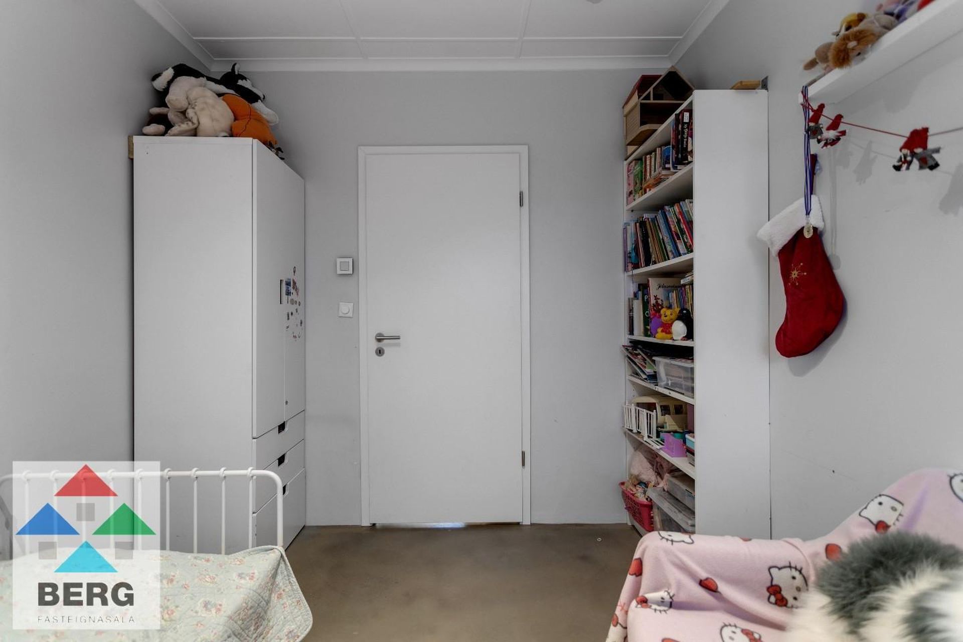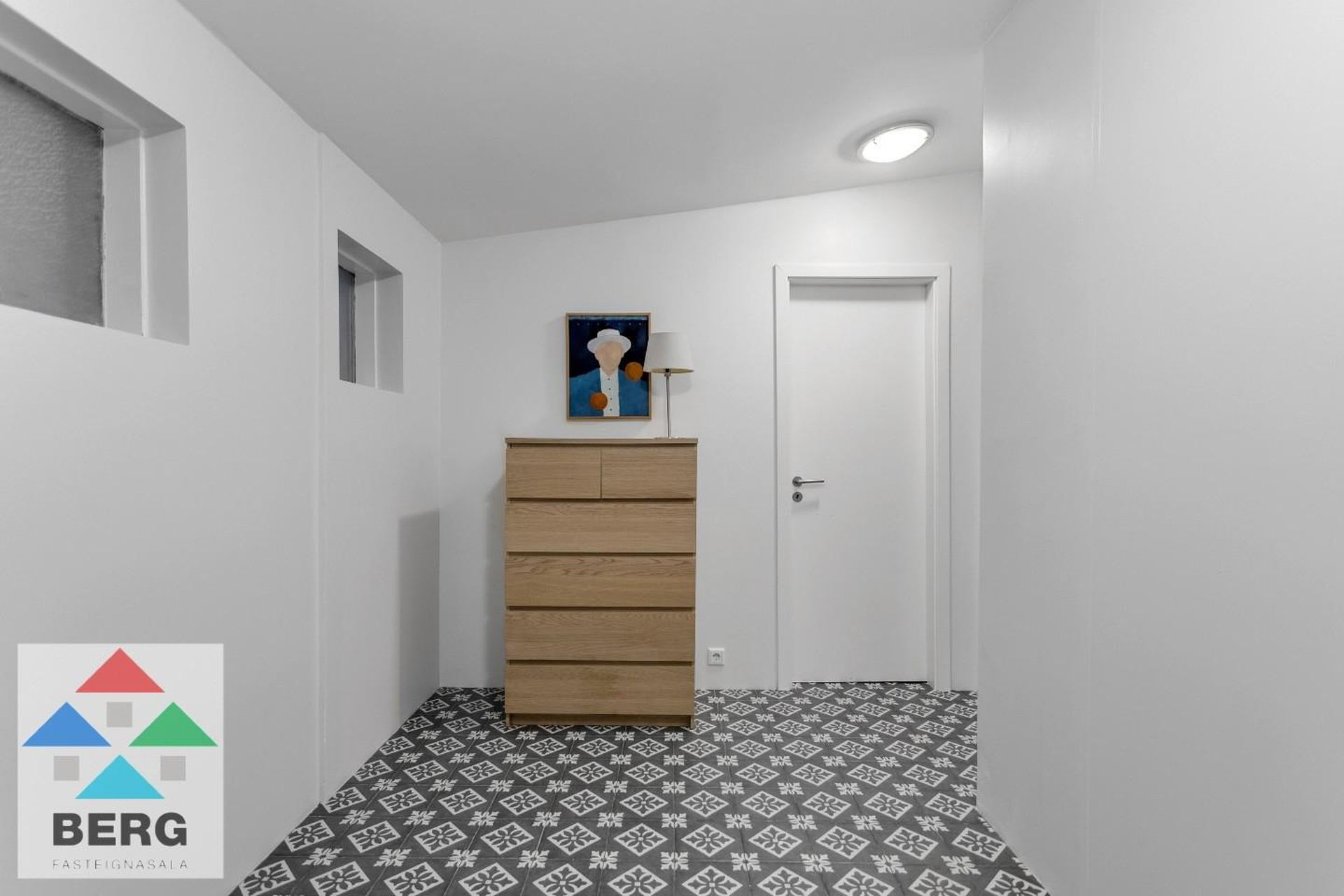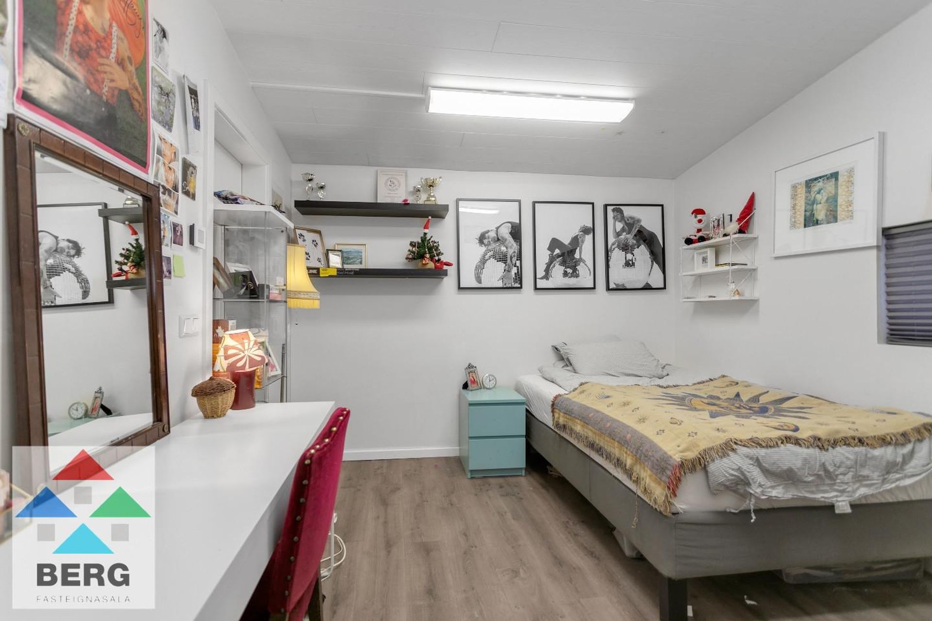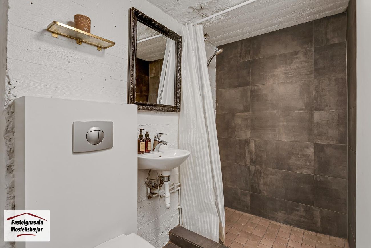 Neðri hæð er með svefnherbergi og sérbaðherbergi með sturtu og salerni. Herbergið er aðskilið frá aðalhæðinni og hentar vel í útleigu eða sem unglingaherbergi.