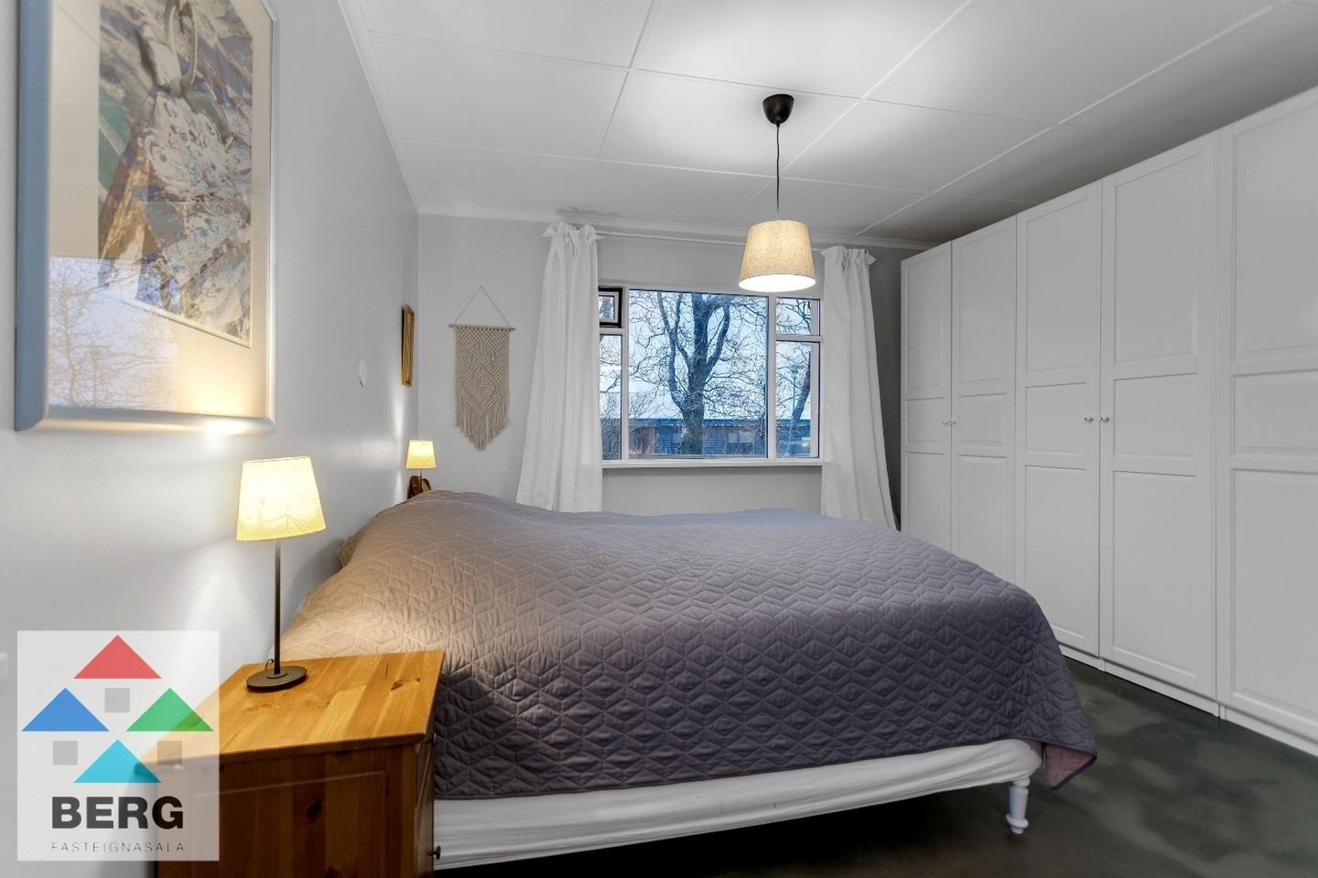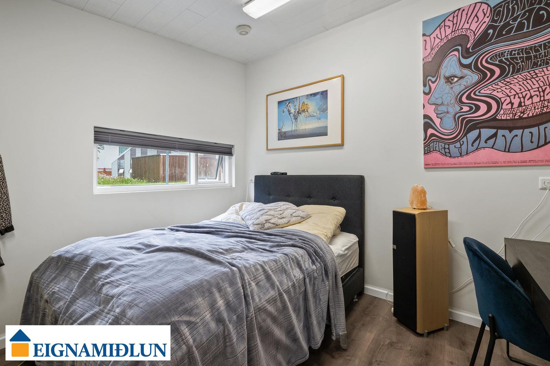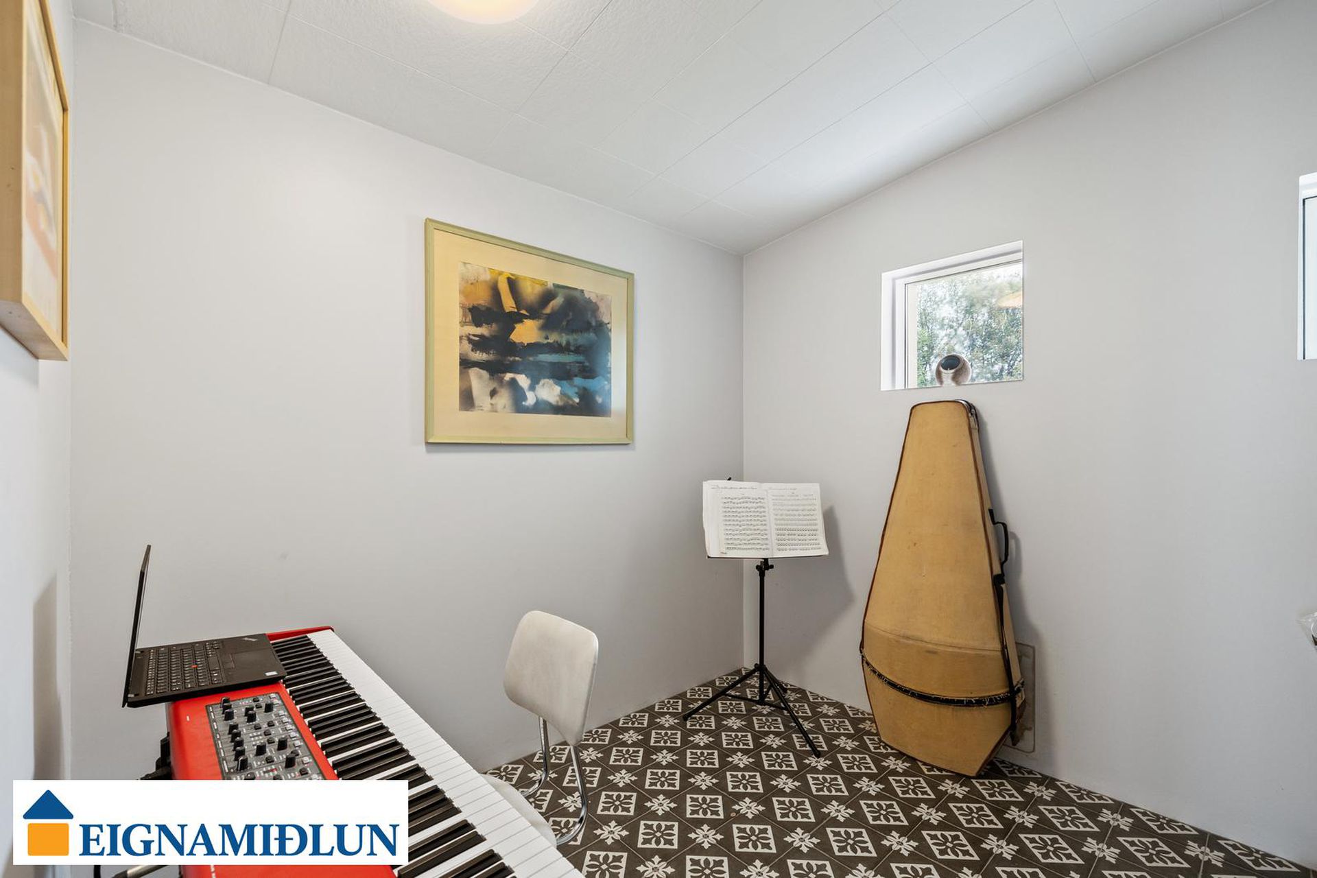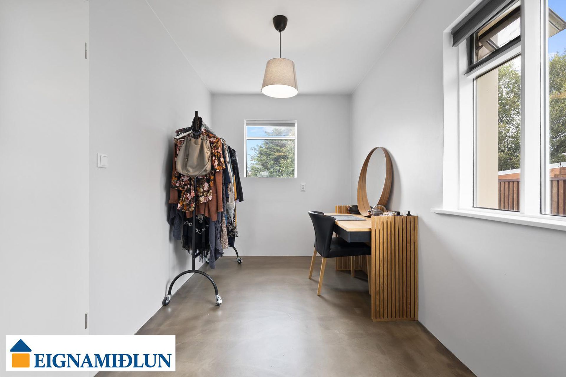 Neðri hæð er með svefnherbergi og sérbaðherbergi með sturtu og salerni. Herbergið er aðskilið frá aðalhæðinni og hentar vel í útleigu eða sem unglingaherbergi.
