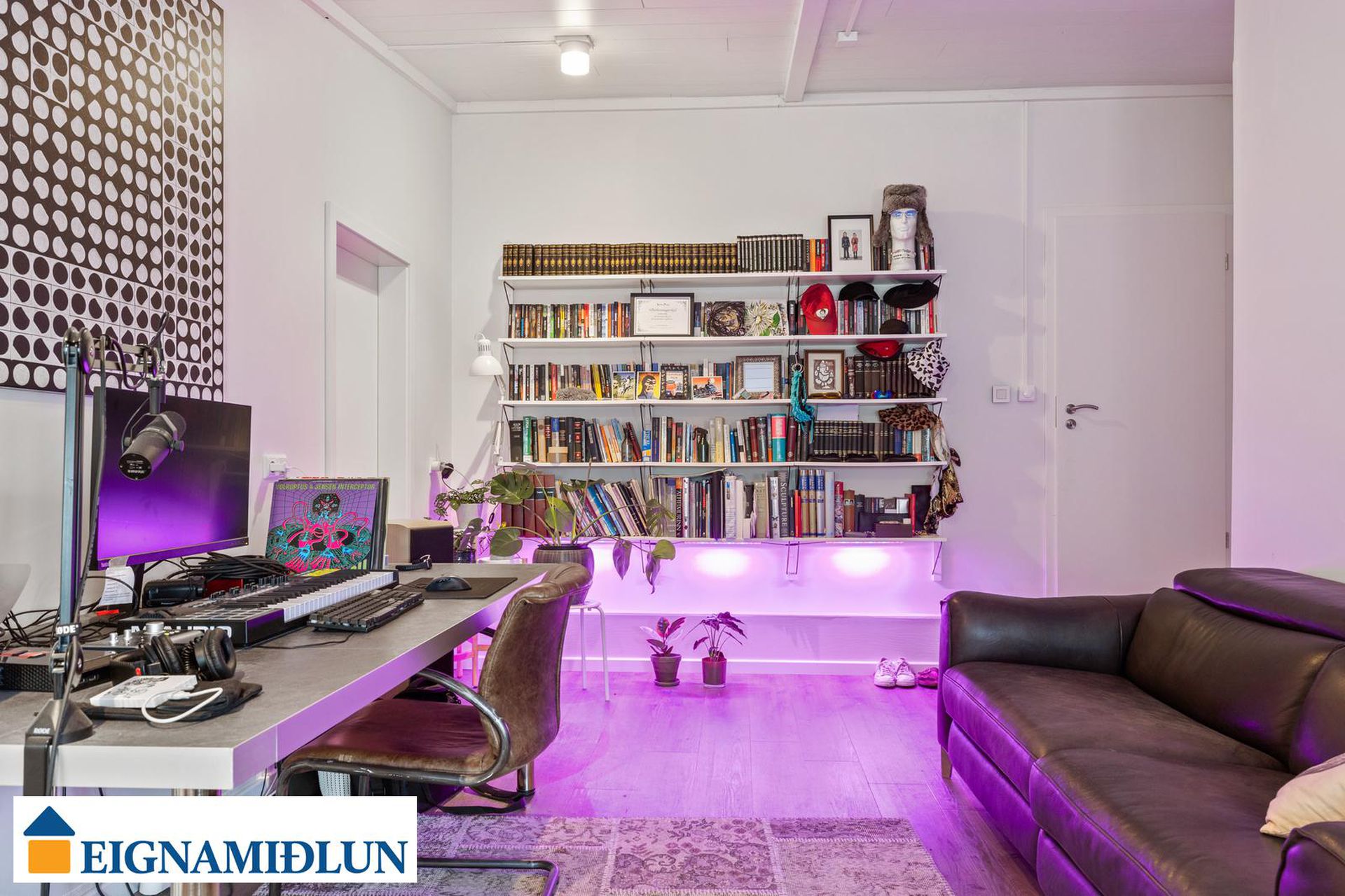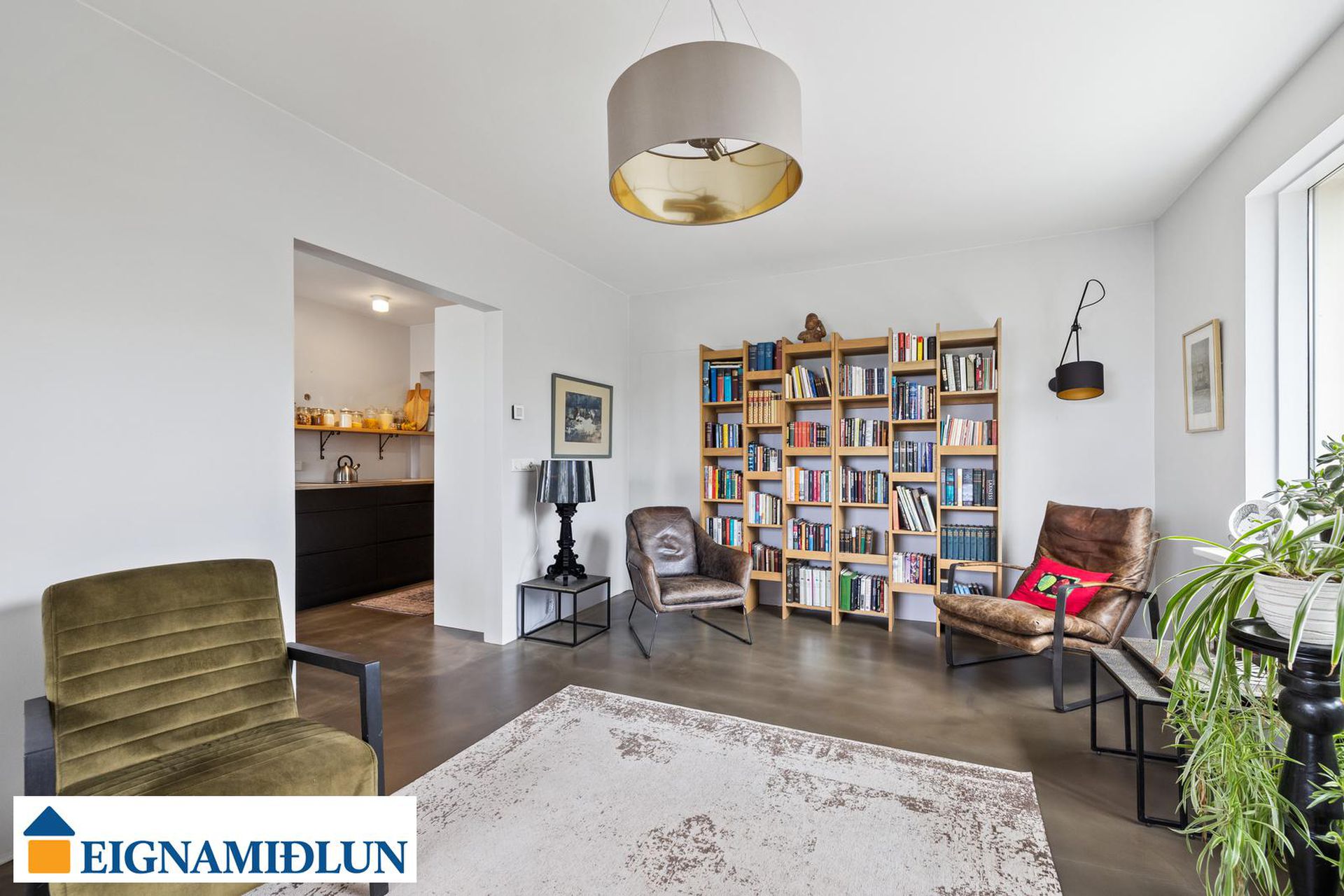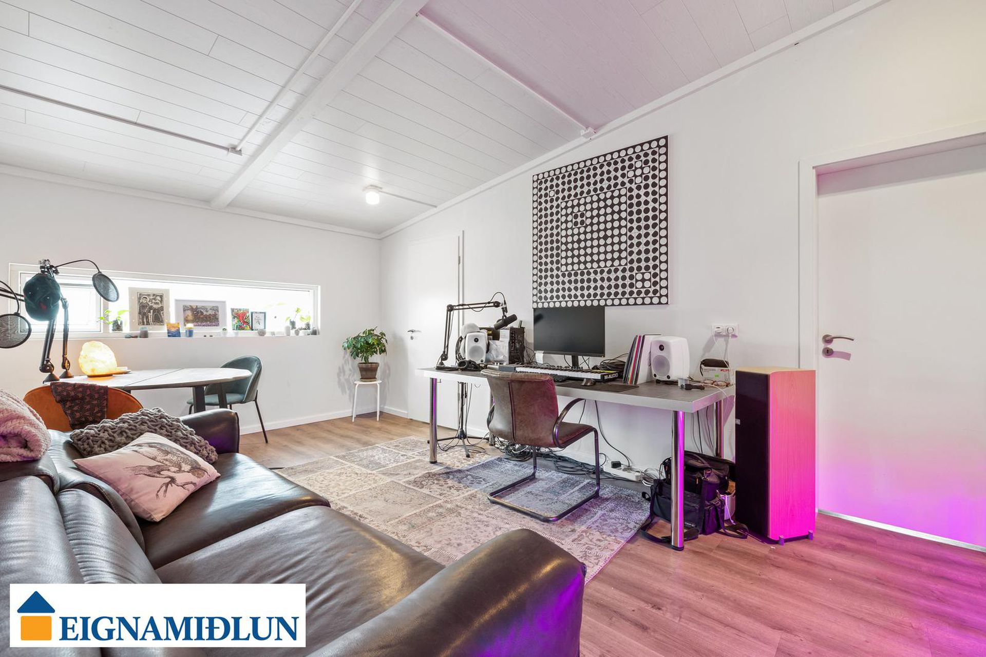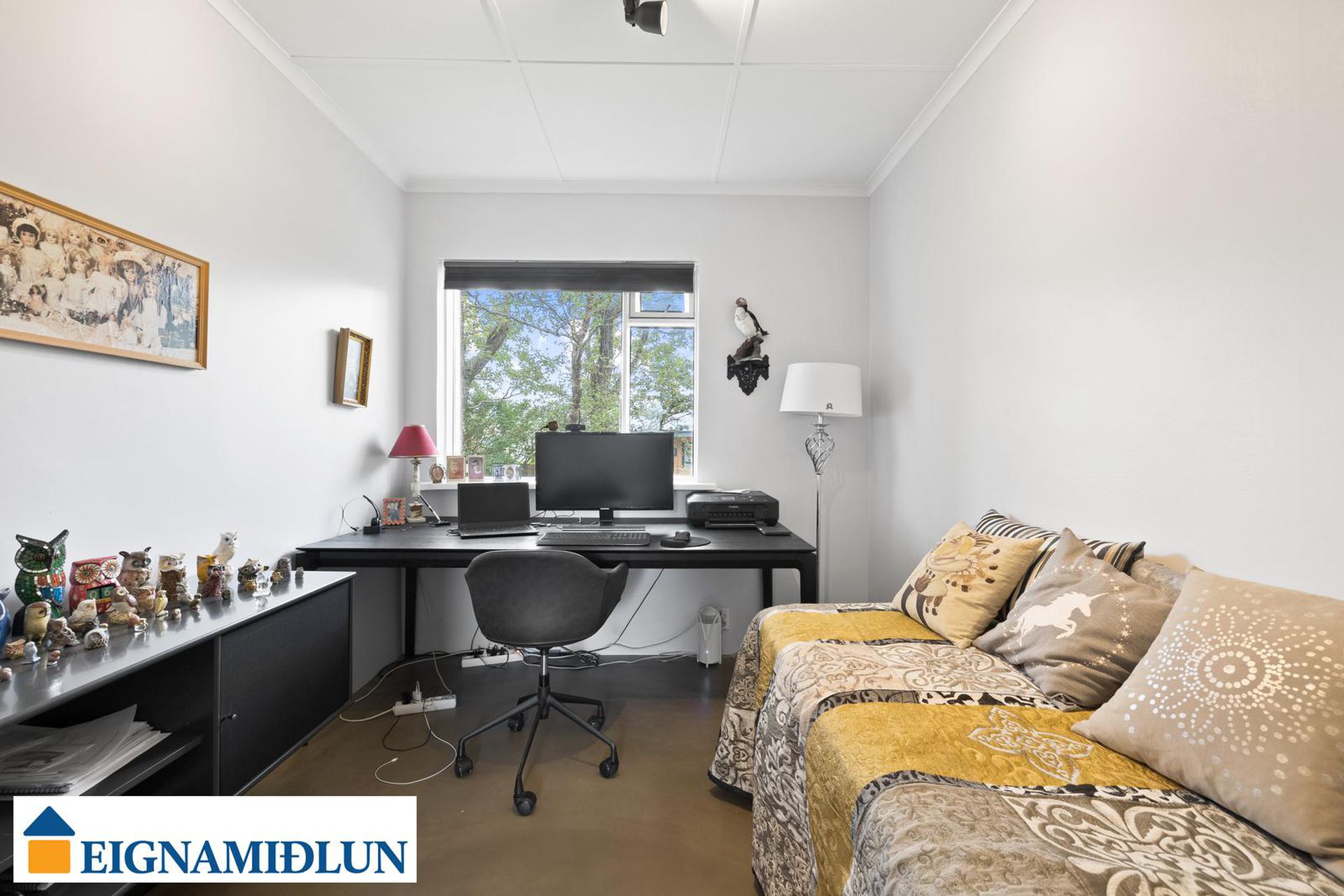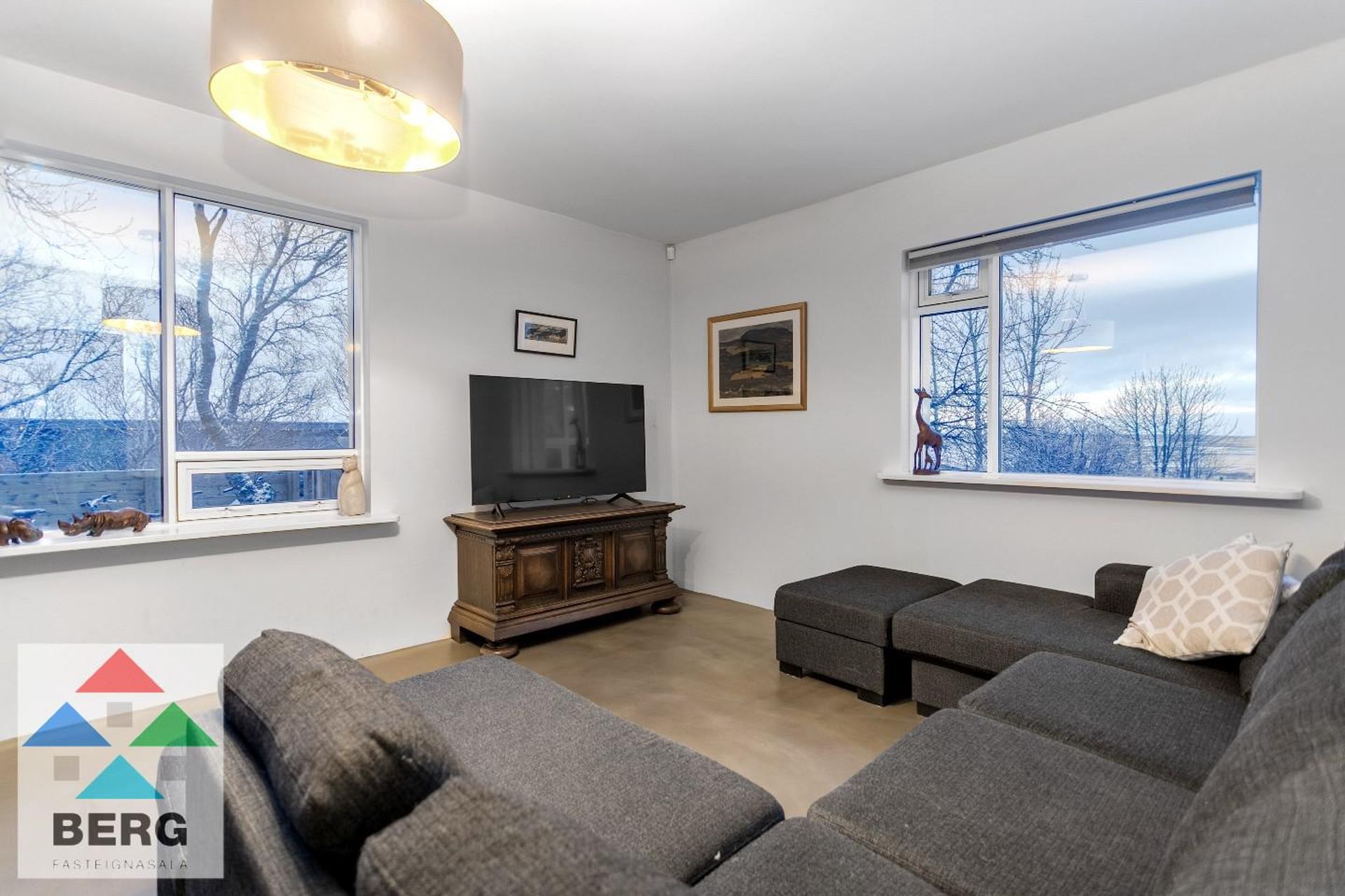 Stofan er rúmgóð og björt með glugga á tvo vegu.