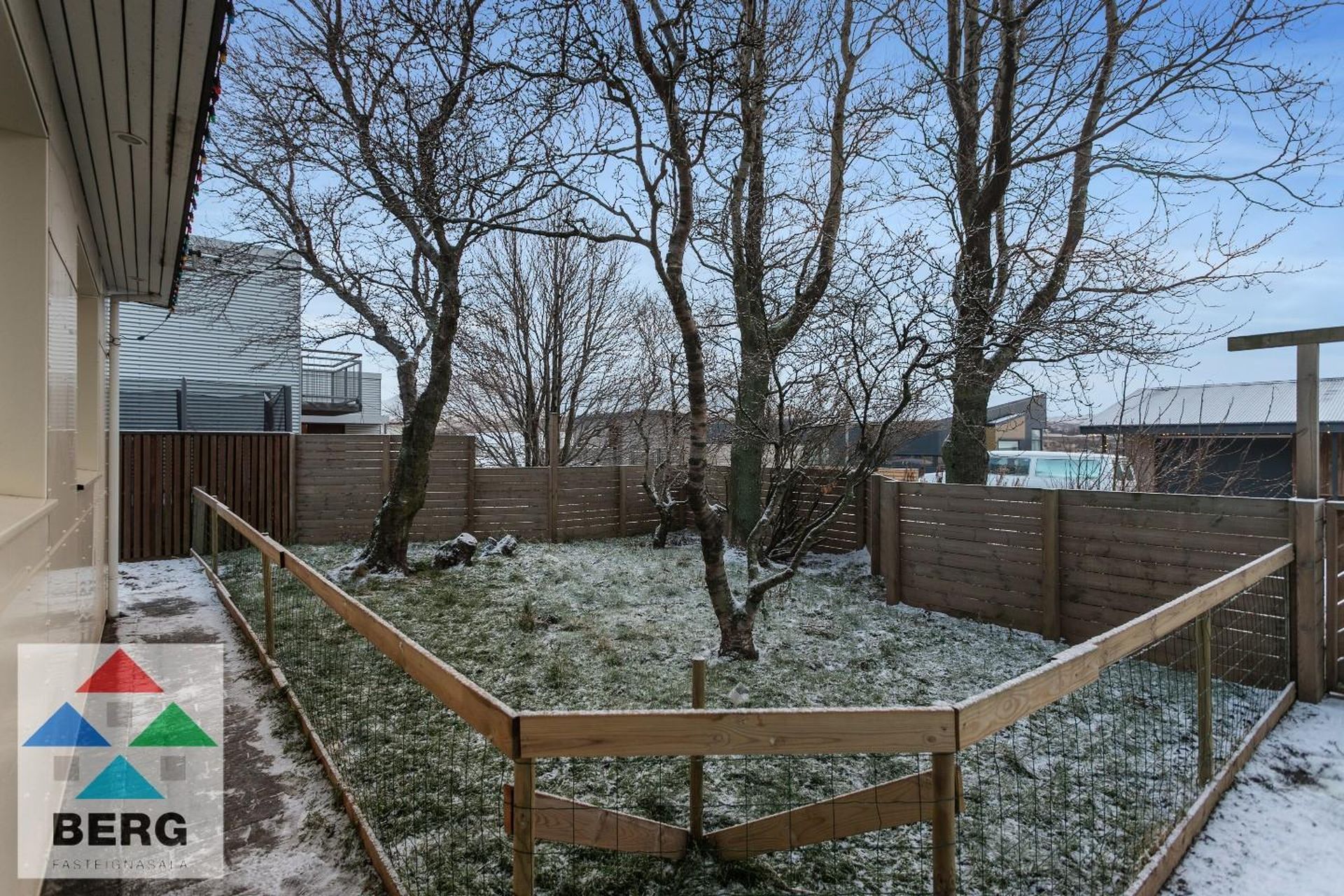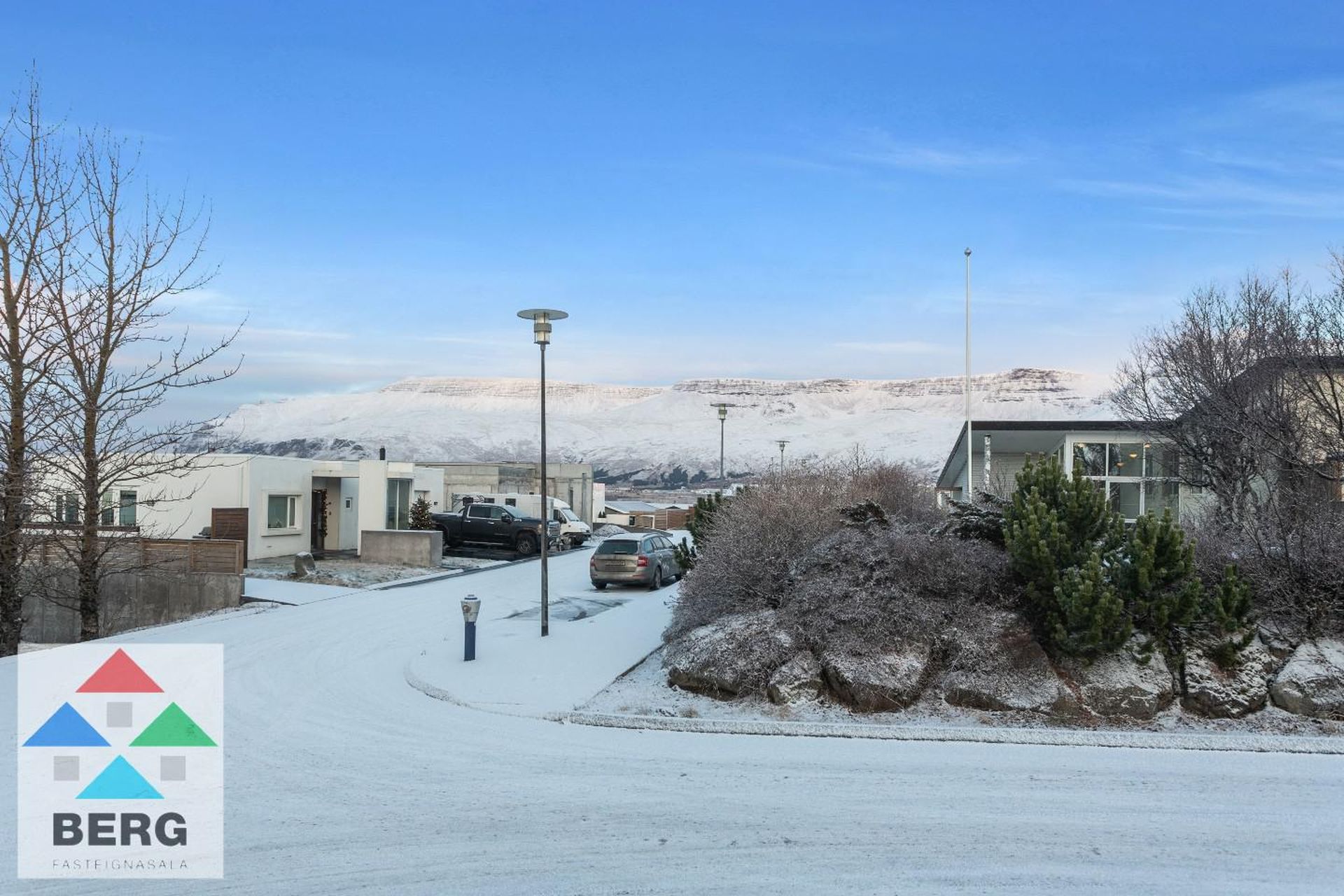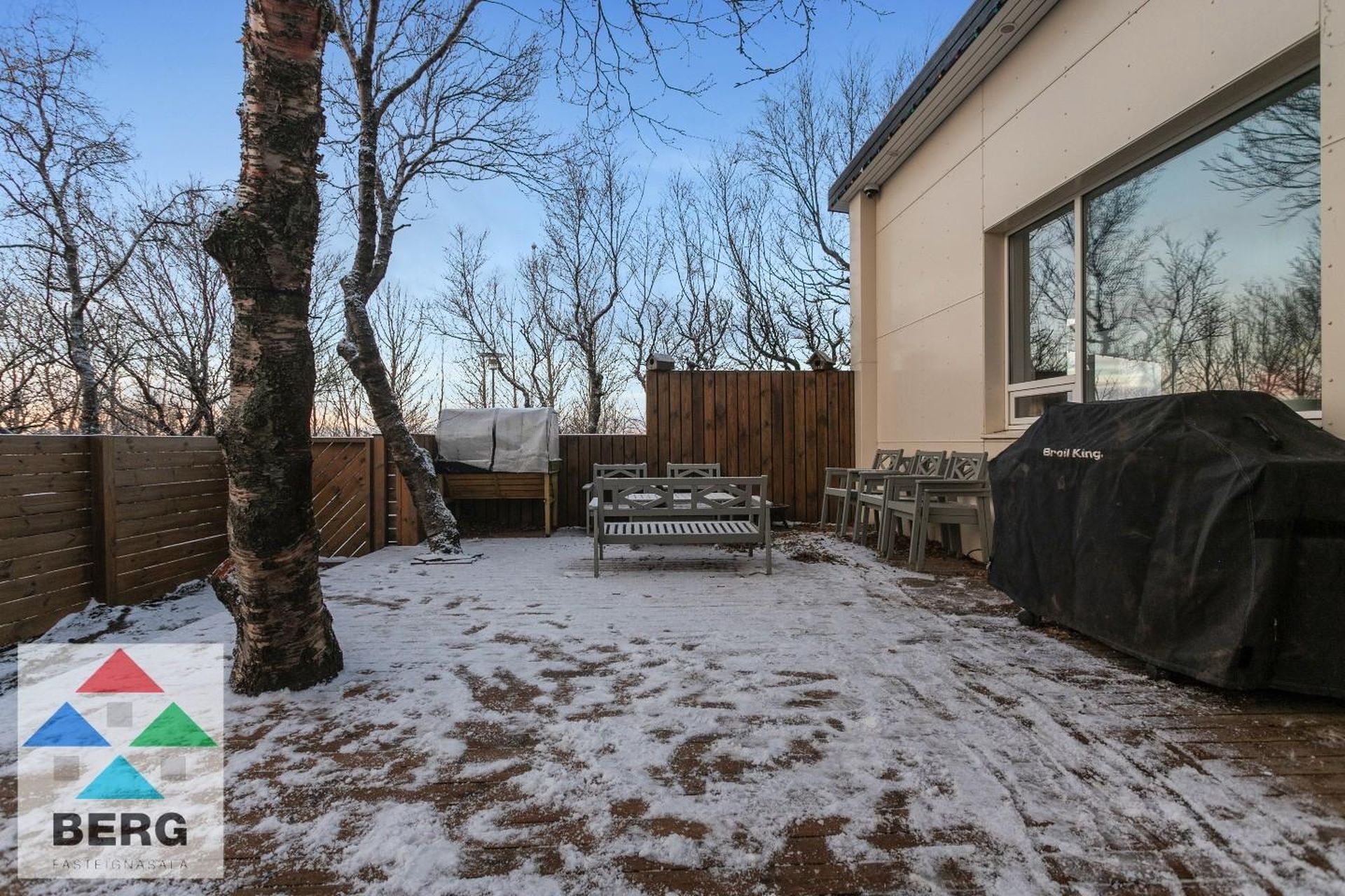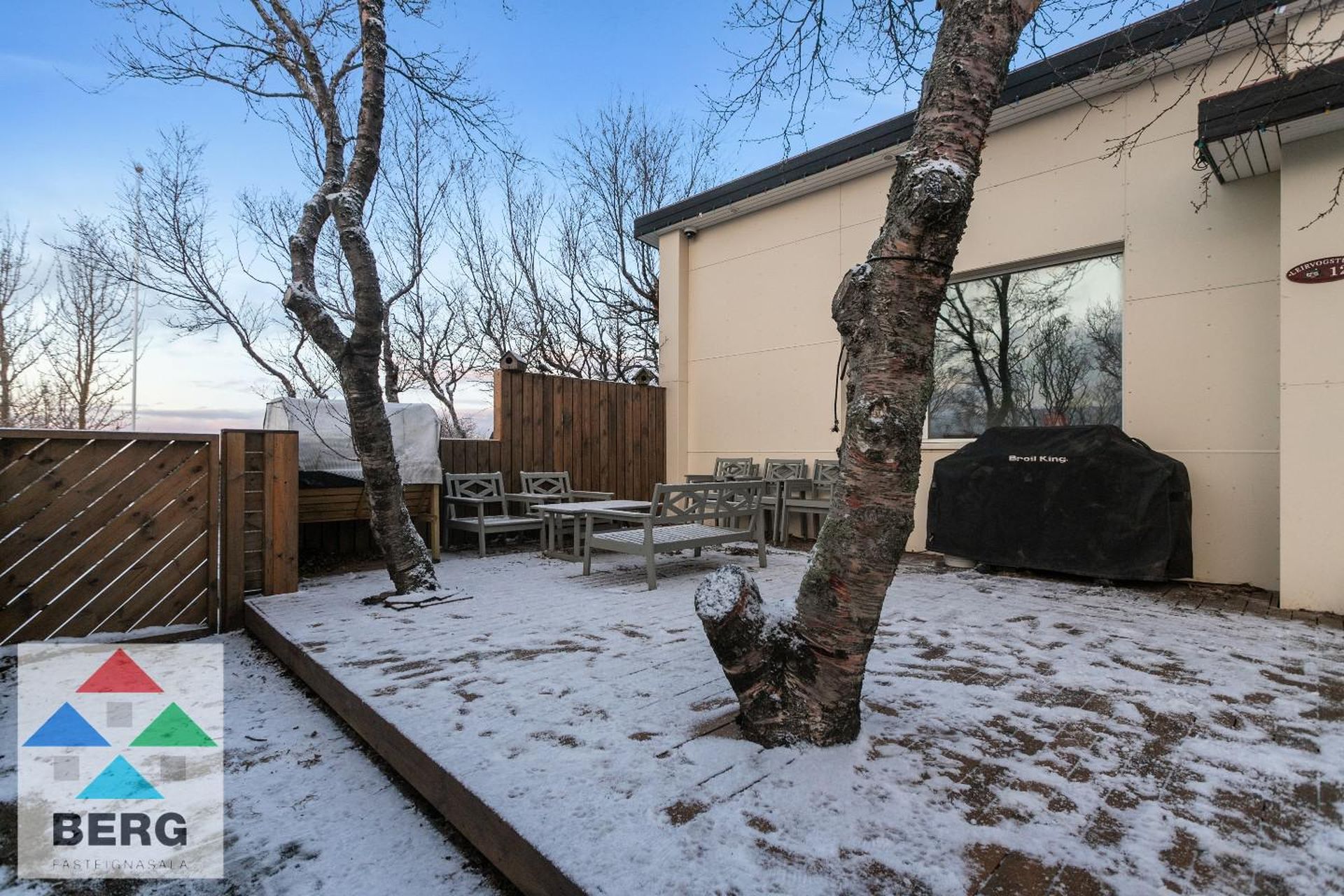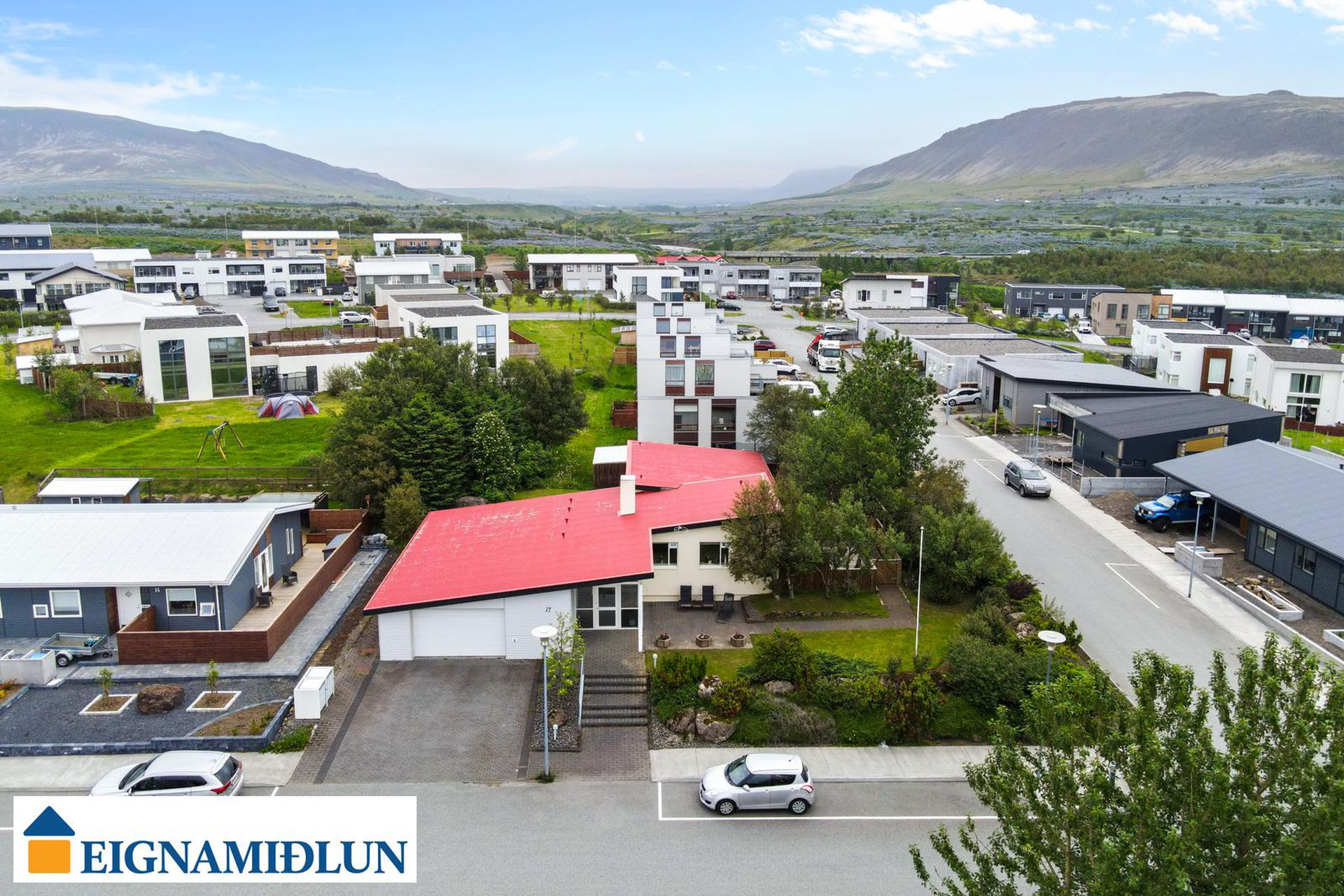 Bílskúr er rúmgóður og með rafdrifinni hurð. Innaf bílskúr er