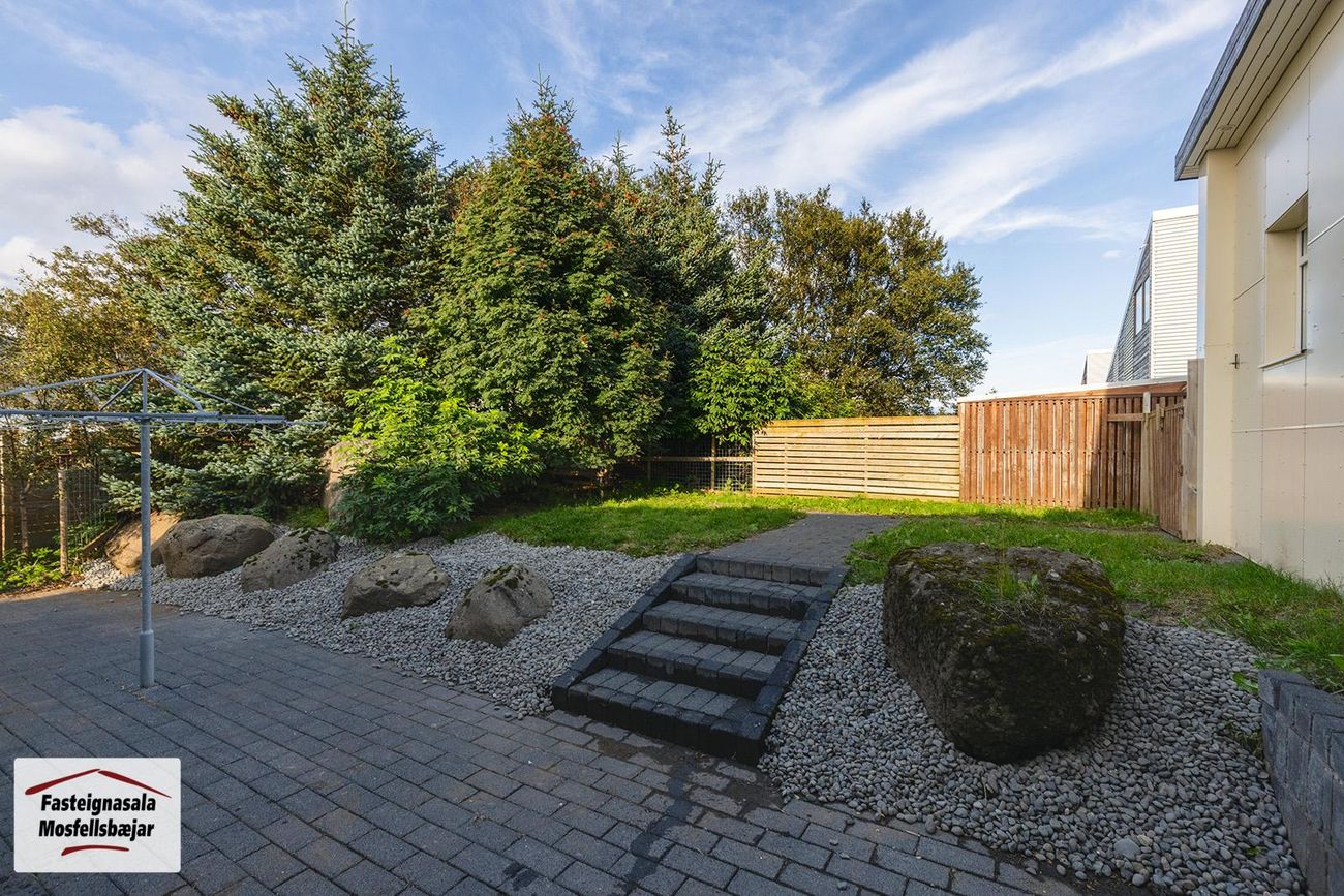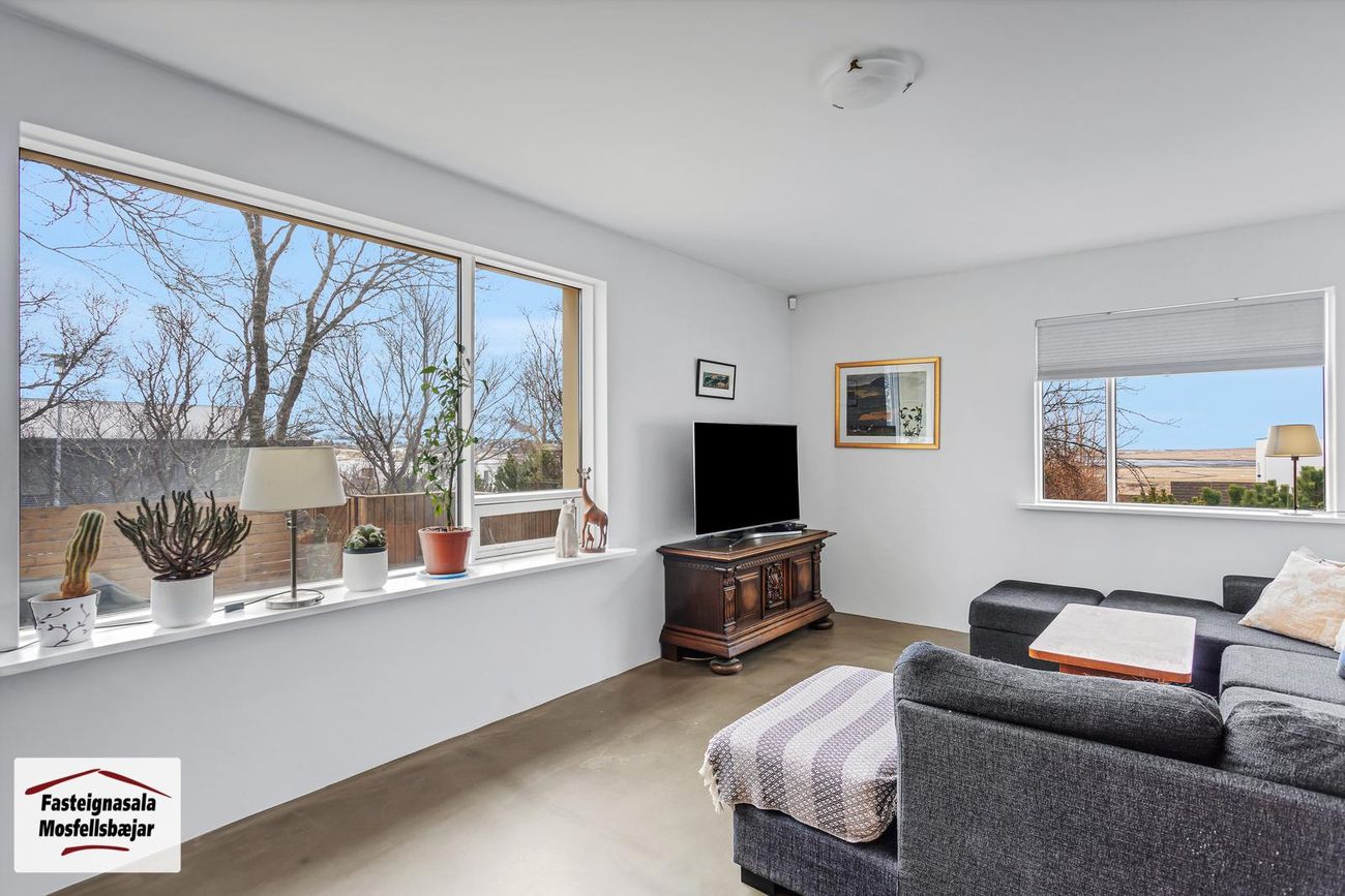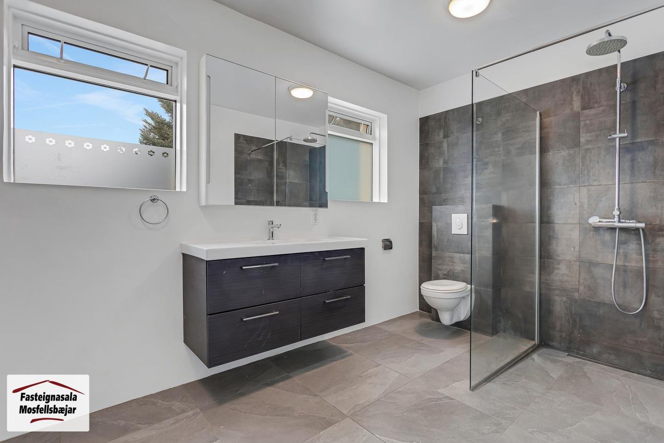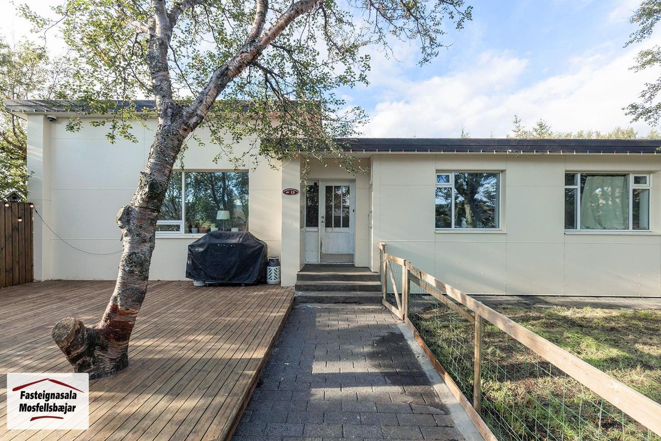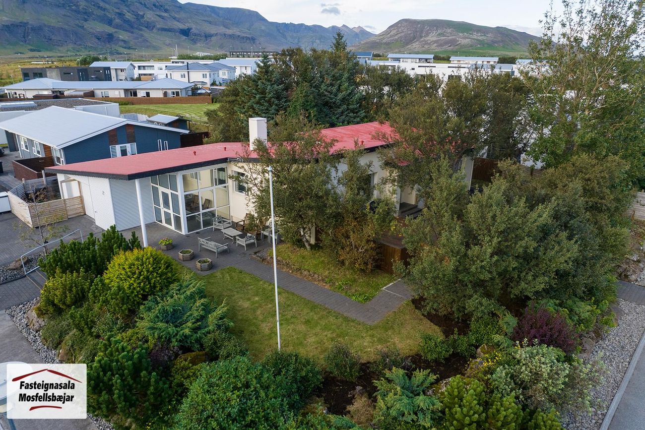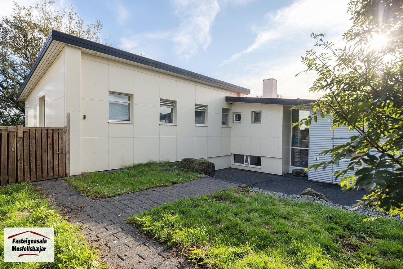 ** Hafðu samband og bókaðu skoðun - Svanþór Einarsson, löggiltur fasteignasali - svanthor@fastmos.is eða 698-8555 - Theodór Emil Karlsson, löggiltur fasteignasali - teddi@fastmos.is eða 690-8040 - Steingrímur Benediktsson, löggiltur fasteignasali - steingrimur@fastmos.is eða 862-9416 **Fasteignasala Mosfellsbæjar kynnir: 253,1 m2 einbýlishús á einni hæð með tvöföldum bílskúr á stórri lóð í Leirvogstungu í Mosfellsbæ. Eignin er í skemmtilegu sérbýlishverfi þar sem mjög stutt er í fallega náttúru. Eignin er skráð 253,1 m2, þar af íbúðarrými 169,5 m2 og bílskúr 83,6 m2. Eignin skiptist í forstofu, baðherbergi með þvottaaðstöðu, 3 svefnherbergi, eldhús, stofu, borðstofu og bílskúr. Inn af bílskúr svefnherbergi, gestasnyrting og eldhúsaðstaða sem var áður nýtt sem auka íbúð. Einnig er svefnherbergi með baðherbergi í kjallara. Eignin stendur á 1.014 m2 eignarlóð með timburverönd til suðurs og hellulagða verönd fyrir framan hús, fallegum garði og stórri baklóð. Bílaplan er hellulagt og með hitalögn. Bílskúrinn og forstofan voru byggð árið 2007 og því nýrri en restin af húsinu.