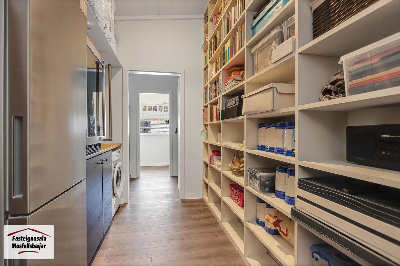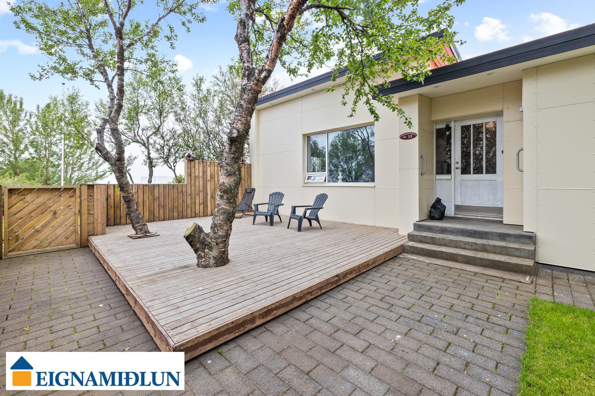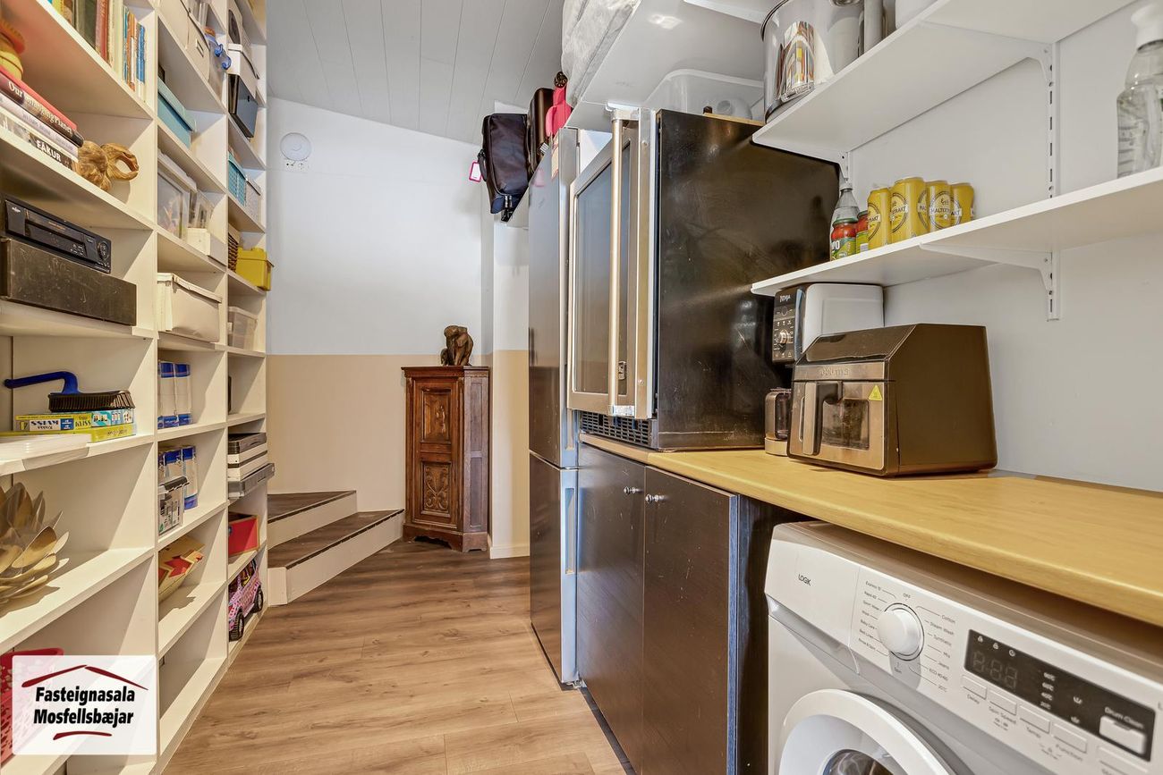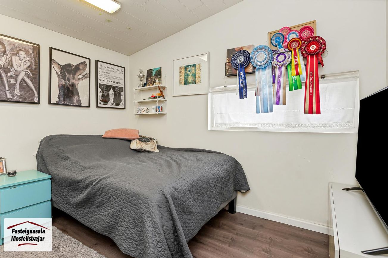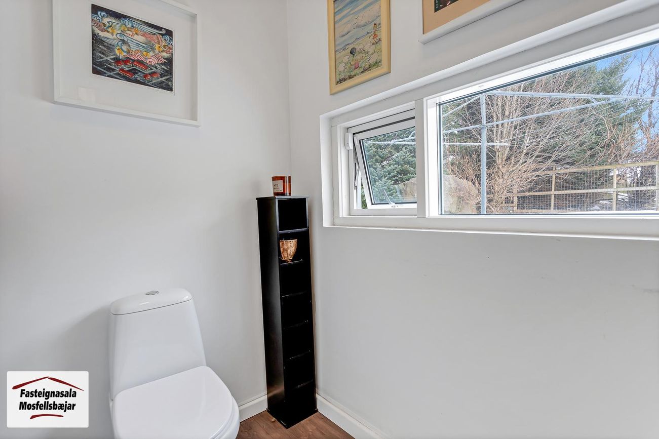 ** Hafðu samband og bókaðu skoðun - Svanþór Einarsson, löggiltur fasteignasali - svanthor@fastmos.is eða 698-8555 - Theodór Emil Karlsson, löggiltur fasteignasali - teddi@fastmos.is eða 690-8040 - Steingrímur Benediktsson, löggiltur fasteignasali - steingrimur@fastmos.is eða 862-9416 **Fasteignasala Mosfellsbæjar kynnir: 253,1 m2 einbýlishús á einni hæð með tvöföldum bílskúr á stórri lóð í Leirvogstungu í Mosfellsbæ. Eignin er í skemmtilegu sérbýlishverfi þar sem mjög stutt er í fallega náttúru. Eignin er skráð 253,1 m2, þar af íbúðarrými 169,5 m2 og bílskúr 83,6 m2. Eignin skiptist í forstofu, baðherbergi með þvottaaðstöðu, 3 svefnherbergi, eldhús, stofu, borðstofu og bílskúr. Inn af bílskúr svefnherbergi, gestasnyrting og eldhúsaðstaða sem var áður nýtt sem auka íbúð. Einnig er svefnherbergi með baðherbergi í kjallara. Eignin stendur á 1.014 m2 eignarlóð með timburverönd til suðurs og hellulagða verönd fyrir framan hús, fallegum garði og stórri baklóð. Bílaplan er hellulagt og með hitalögn. Bílskúrinn og forstofan voru byggð árið 2007 og því nýrri en restin af húsinu.