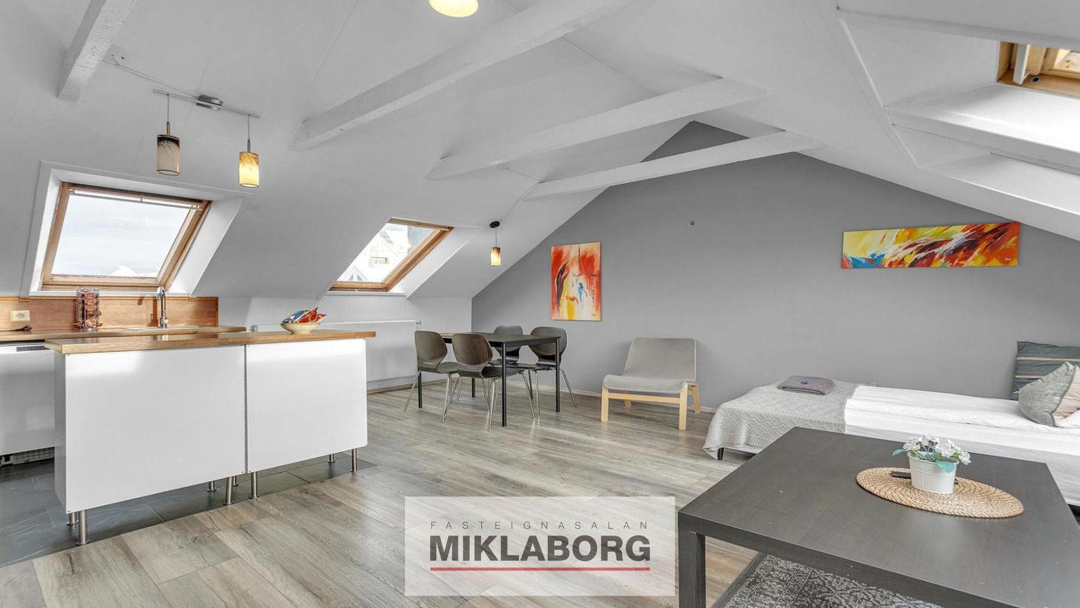 Samþykkt liggur fyrir um að setja kvist á íbúðina sem myndi auka stærð hennar og nýtingu.