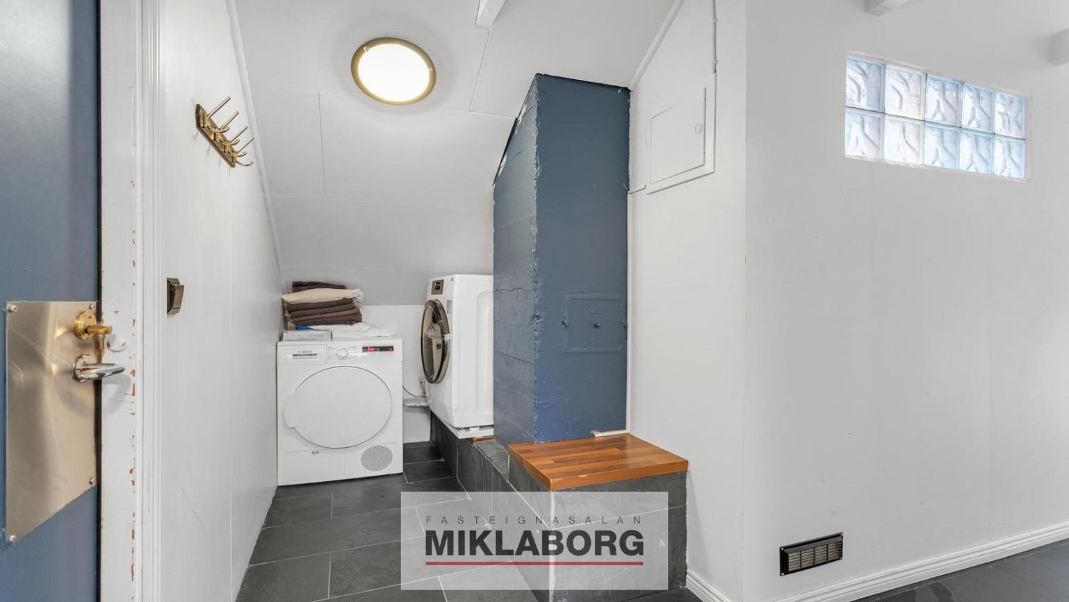 Þvottaaðstaða: er í anddyri íbúðar. Íbúðin er töluvert undir súð en gólfflötur er mun meiri en skráð stærð.