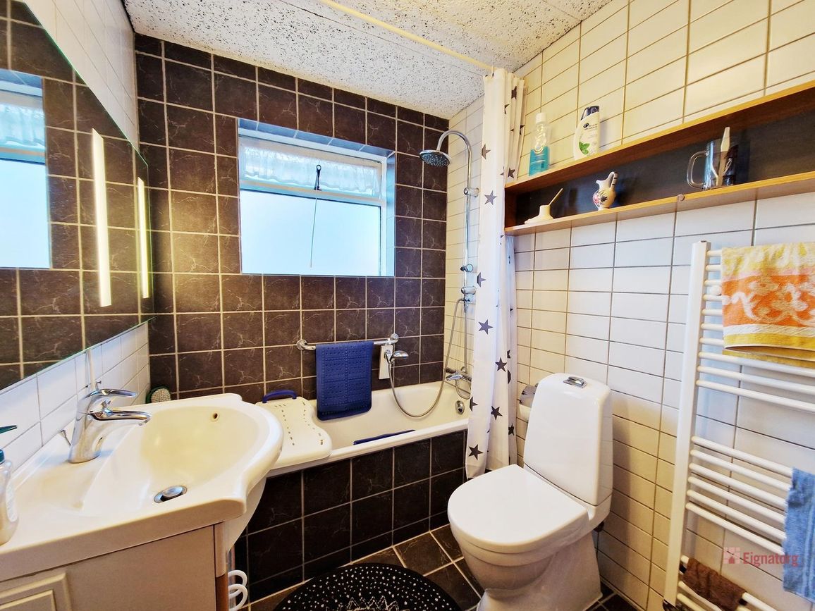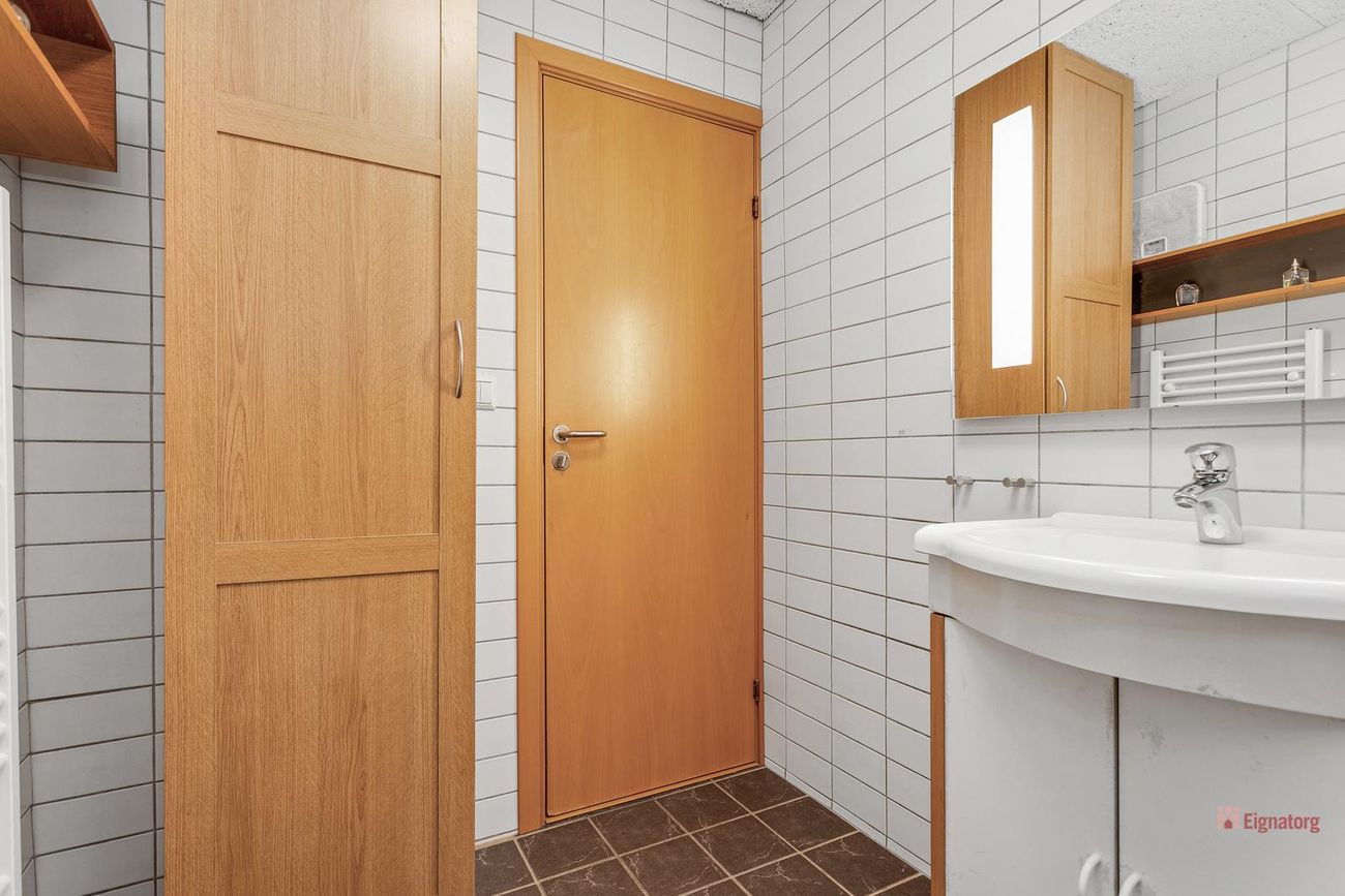 Nánari lýsing: Forstofa með flísum á gólfi og fatahengi. Geymsla er undir útitröppum. Hol með parketi á gólfi. Stofa með parketi á gólfi og gluggum á tvo vegu. Þvottahús með máluðu gólfi, glugga og vinnuborði. Sjónvarpshol með parketi á gólfi. Herbergi með parketi á gólfi og skáp. Herbergi með parketi og skáp. Baðherbergi með flísum á gólfi, línskáp, handklæðaofni, baðkari, innréttingu og glugga. Hjónaherbergi með parketi á gólfi, skápum og gluggum á tvo vegu. Eldhús með parketi á gólfi, fallegri innréttingu, kvörn í vaski, borðkrók og gluggum á tvo vegu. Gert er ráð fyrir uppþvottavél í innréttingu.