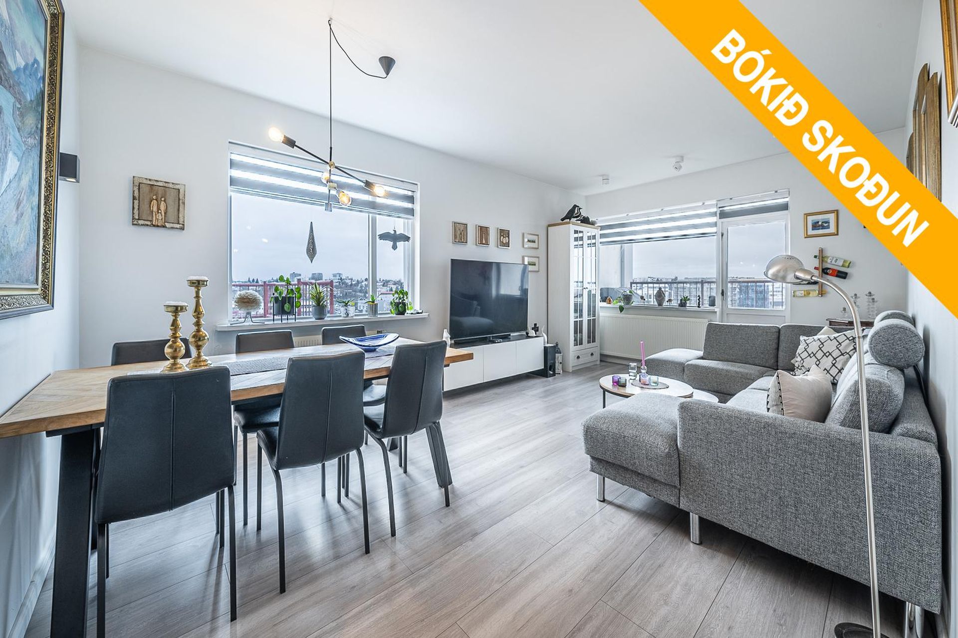Eignamiðlun kynnir:Björt og vel skipulögð fjögurra herbergja 106,5 m2 útsýnisíbúð á 8. hæð við Ljósheima 6 í Reykjavík. Gluggar á þrjá vegu í íbúðinni. Eignin er í góðu fjölbýlishúsi sem hefur fengið gott viðhald, er klætt að utan með viðhaldslítilli klæðningu. Tvennar svalir og góð sér geymsla tilh... Sýna meira