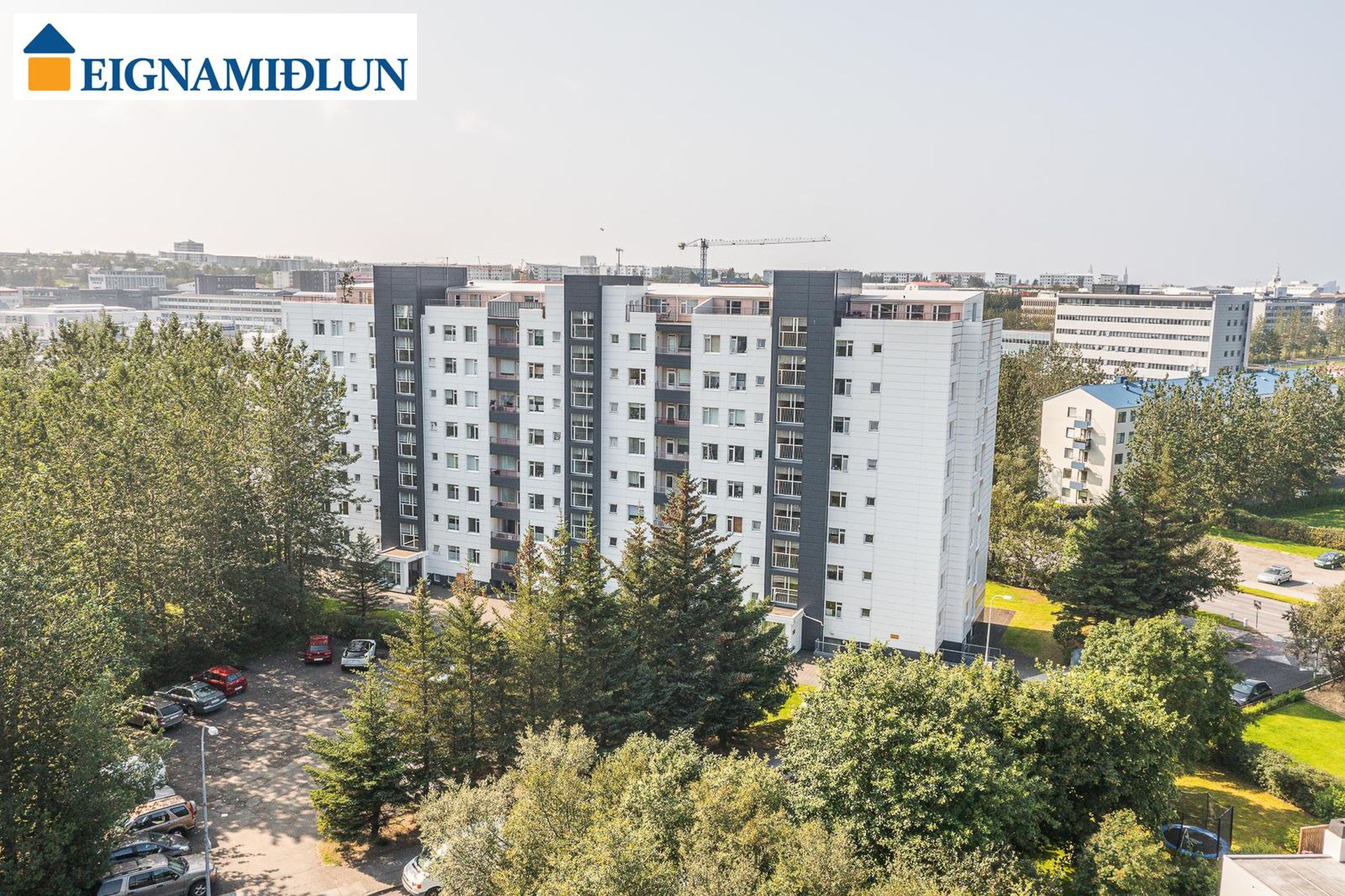 Eignamiðlun kynnir:Björt og vel skipulögð fjögurra herbergja 106,5 m2 útsýnisíbúð á 8. hæð við Ljósheima 6 í Reykjavík. Gluggar á þrjá vegu í íbúðinni. Eignin er í góðu fjölbýlishúsi sem hefur fengið gott viðhald, er klætt að utan með viðhaldslítilli klæðningu. Tvennar svalir og góð sér geymsla tilheyrir eigninni sem er á 9. hæð hússins. Frábær staðsetning og mikið útsýni. BÓKIÐ SKOÐUN HJÁ: Gunnar Bergmann Jónsson í síma 839-1600 eða Eignin skiptist í anddyri, eldhús, gang, stofu, borðstofu, 3 svefnherbergi, baðherbergi og geymslu. Sameiginleg hjóla- og vagnageymsla í sameign. Einnig er sameiginlegt þvottahús í kjallara með mjög fínum vélum, geymsla og svalir á 9. hæð. Lyfta er í húsinu. Náttúrusteinn er á gólfi í forstofu og eldhúsi, harðparket á gólfi í stofu, gangi og svefnherbergjum og flísar á baði. Komið er inn í gott anddyri. Eldhús er með fallegri hvítri innréttingu, bakarofni, keramik helluborði, háfi yfir úr burstuðu stáli. Hillur fyrir ofan neðriskápa með innfelldri halogenlýsingu. Tengi er fyrir þvottavél í eldhúsi. Rúmgóður borðkrókur í eldhúsi. Nýlegur tvöfaldur Samsung ísskápur fylgir með íbúðinni ásamt nýegri uppþvottavél. Stofa og borðstofa er björt og rúmgóð og er þaðan útgengi á svalir í vestur með mögnuðu útsýni. Baðherbergi hefur verið endurnýjað, það er flísalagt í hólf með upphengdu salerni, góðri baðinnréttingu og baðkari með sturtu yfir. Fataskápur er á gangi. Svefnherbergin eru þrjú, hjónaherbergi er rúmgott með nýlegu harðparketi á gólfi, stórum fataskáp og er útgengi á svalir í suðvestur. Tvö lítil barnaherbergi sem búið er að breyta í eitt stórt, auðvelt að setja upp vegg til að hafa tvö barnaherbergi. Uppi á næstu hæð, þeirri efstu er góð geymsla með glugga auk þess sem þar eru sameiginlegar svalir. Um er að ræða bjarta og fallega fjögurra herbergja útsýnisíbúð á 8. hæð í góðu fjölbýli við Ljósheima í Reykjavík. Eignin er afar miðsvæðis, örstutt í alla helstu þjónustu, leik-, grunn- og menntaskóla, Laugardalinn ofl. Gjöld sem kaupandi þarf að standa straum af vegna kaupanna:1. Stimpilgjald af kaupsamningi - 0,4% - 0,8% hjá einstaklingum og 1,6% hjá lögaðilum af heildarfasteignamati.2. Þinglýsingargjald af kaupsamningi, veðskuldabréfum, veðflutningsskjölum, mögulegu veðleyfi o.fl. - kr. 2.700 af hverju skjali.3. Lántökugjald lánastofnunar. Nánari upplýsingar á t.d. heimasíðu lánastofnana.4. Umsýslugjald til fasteignasölu, sbr. þjónustusamning.Eignamiðlun ehf. - Grensásvegur 11, 108 Reykjavík - - Gunnar Bergmann Jónsson löggiltur fasteignasali. ***Ábyrg þjónusta í áratugi. Eignamiðlun var stofnuð 1957 og er elsta starfandi fasteignasala á Íslandi. Reynsla, heiðarleiki og þekking á fasteignamarkaðnum eru grunnur að farsælum viðskiptum. Eignamiðlun Grensásvegi 11, 108 Reykjavík - Opið frá kl. 9-17 mánudaga til fimmtudaga og 9-16 á föstudögum.Heimasíða EignamiðlunarEignamiðlun á Facebook