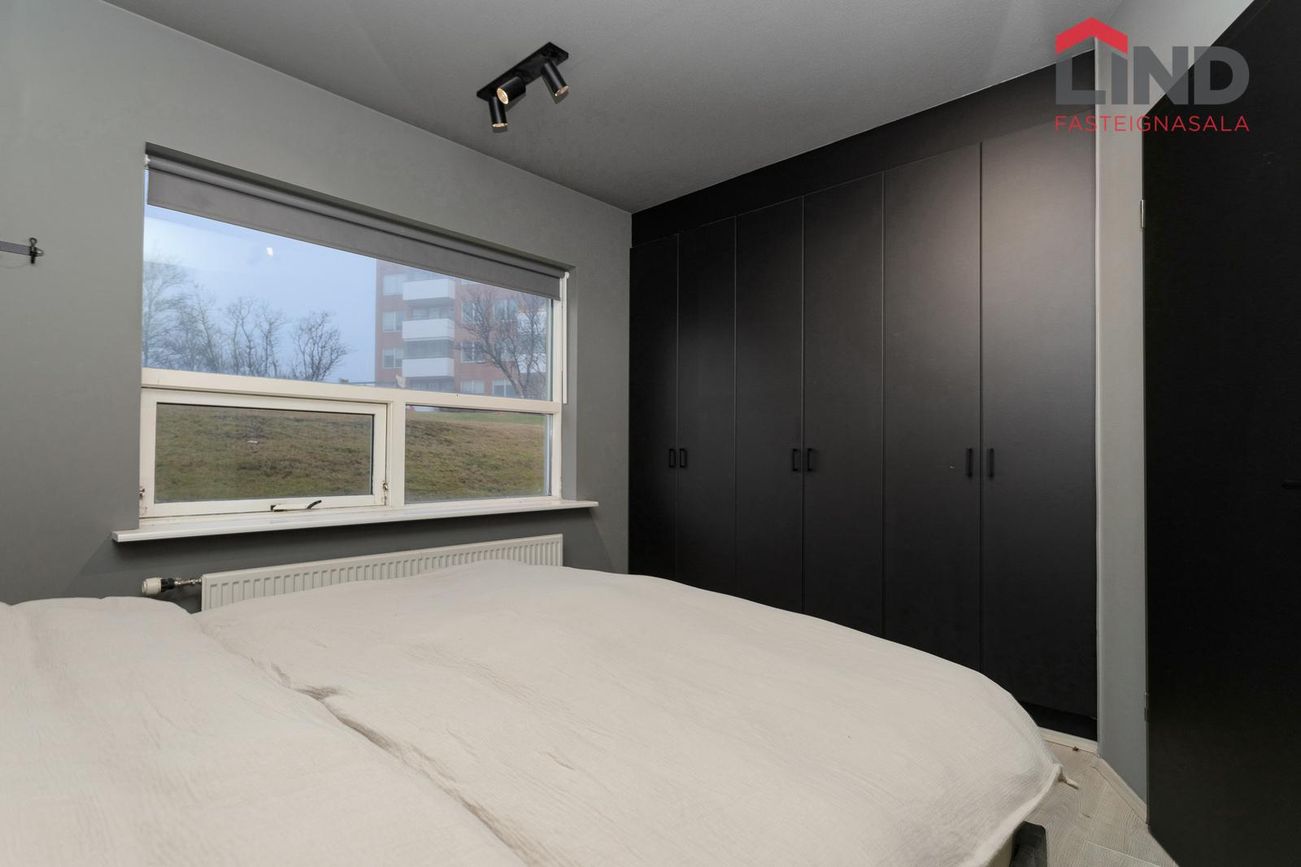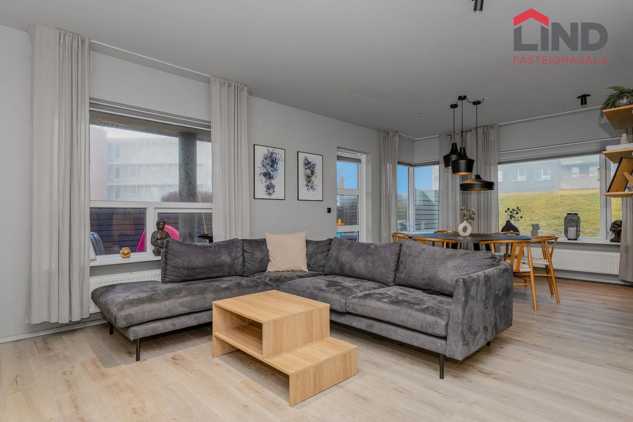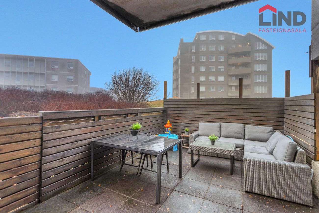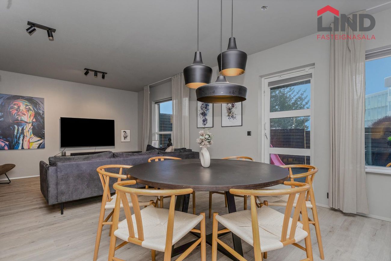 LIND fasteignasala og Helga Pálsdóttir löggiltur fasteignasala kynnir virkilega fallega og nokkuð mikið endurnýjaða 120,9 m2 fjögurra herbergja endaíbúð með stæði í bílageymslu á jarðhæð garðmegin með útgengi út á góða verönd með skjólveggjum. Íbúðin er vel skipulögð þar sem hver fermetri nýtist. Samkvæmt FMR er íbúðarfermetrar eignarinnar 113,4 m2 ásamt 7,5 m2 geymslu. Íbúðin samanstendur af þremur svefnherbergjum, forstofu, stofu, borðstofu, eldhúsi, þvottahúsi og baðherbergi. Sér geymsla ásamt sameiginlegri hjóla- og vagnageymslu eru á 1.hæð.