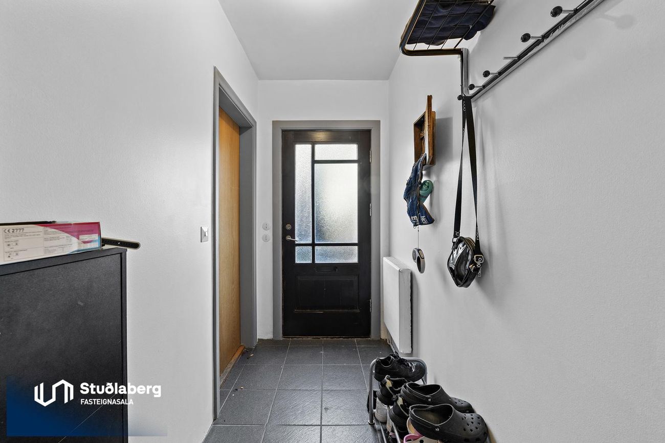 Forstofa hefur flísar á gólfi.