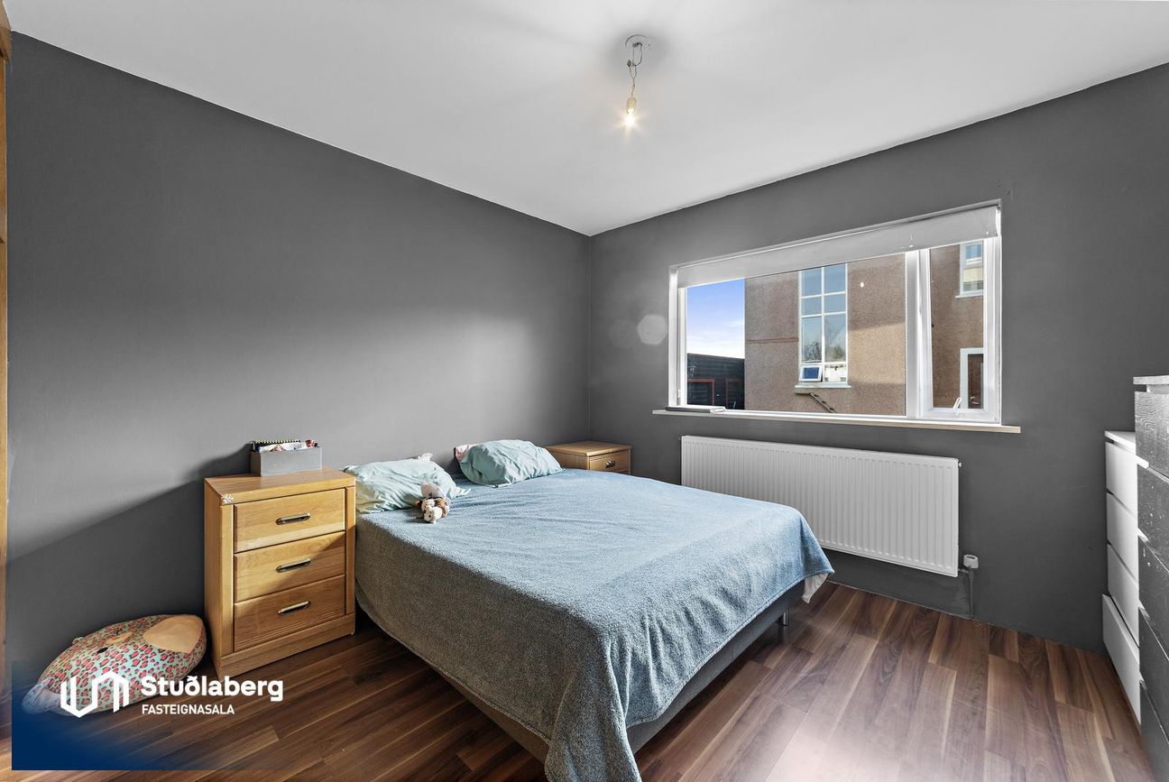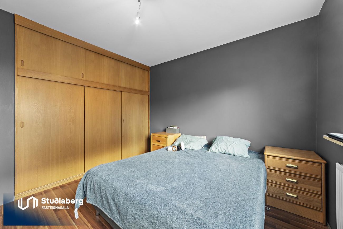Svefnherbergin eru þrjú og hafa parket á gólfi, plássmikill fataskápur í einu.