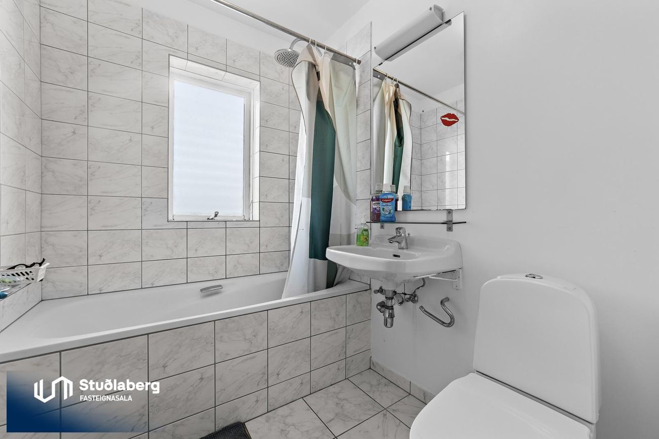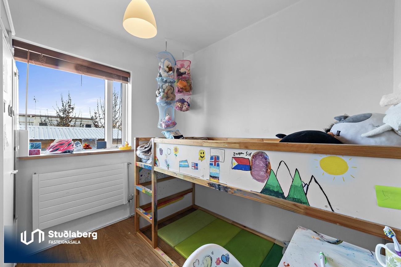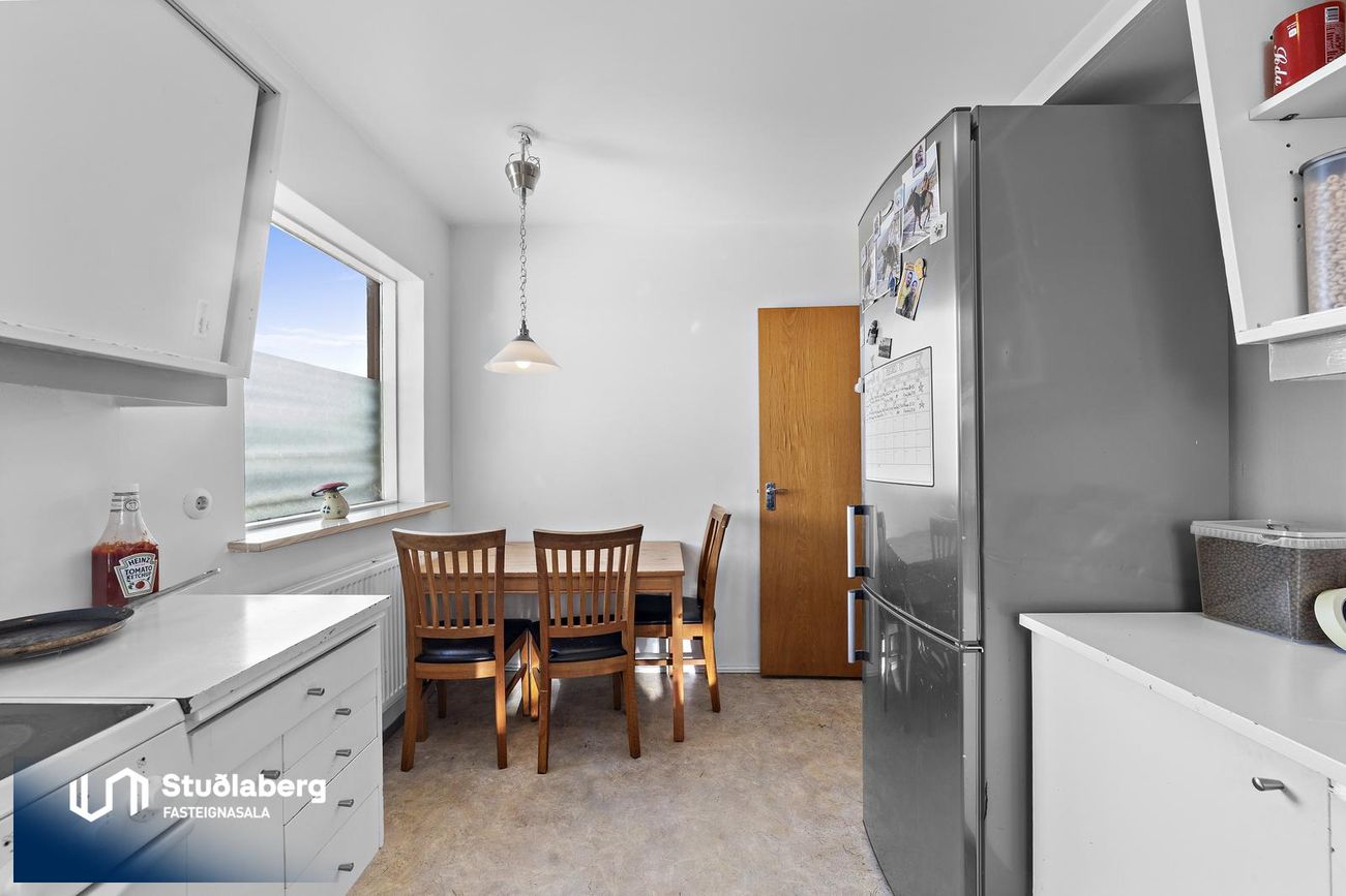 Stofan er tvöföld og er möguleiki að stúka niður stofu í herbergi og stofu.