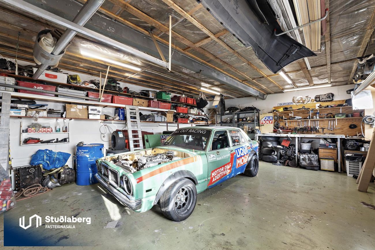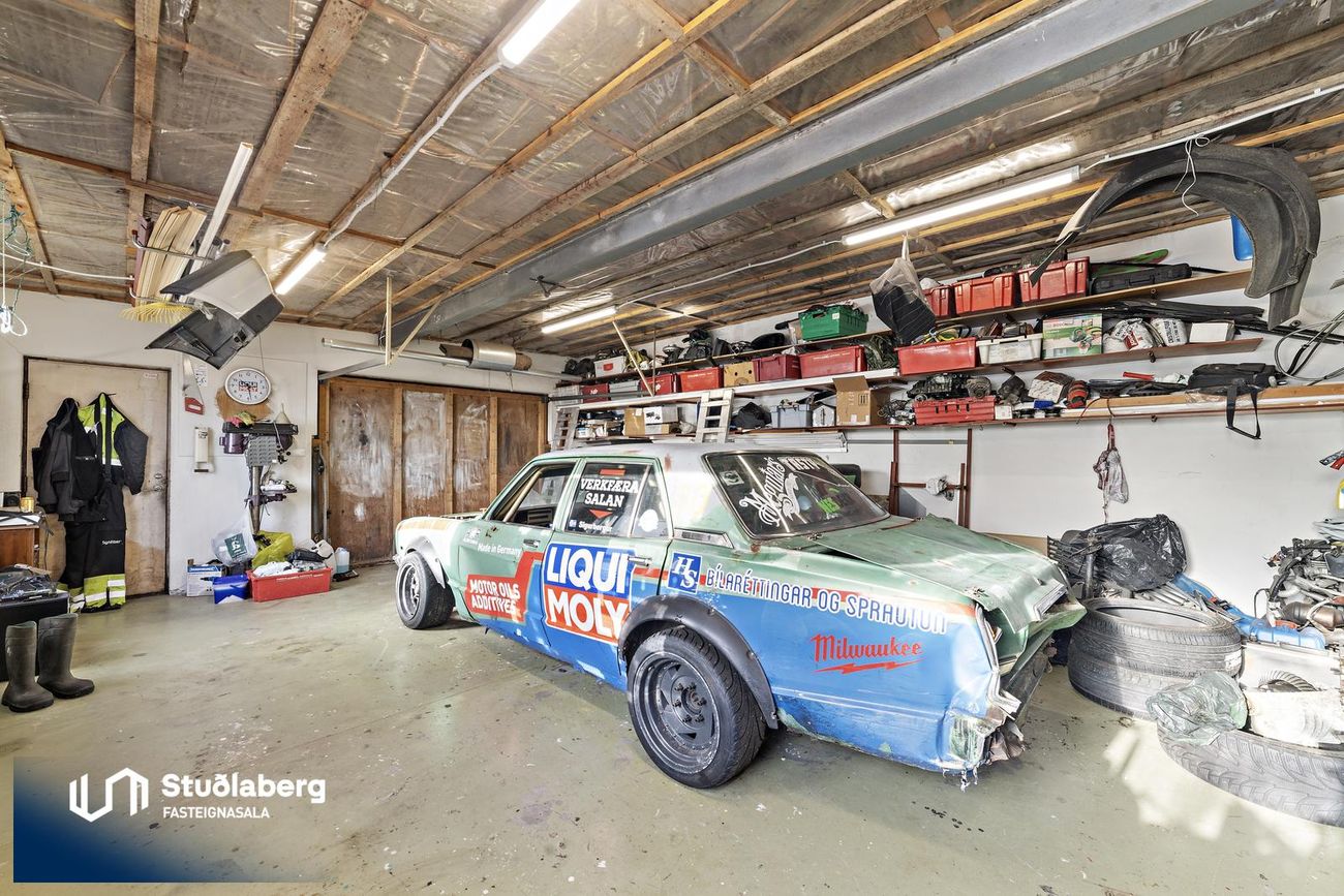 Bílskúr er 48.5 fm með hita og rafmagni.