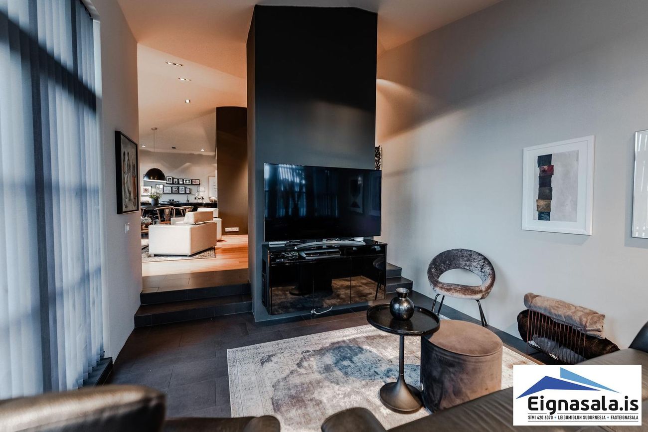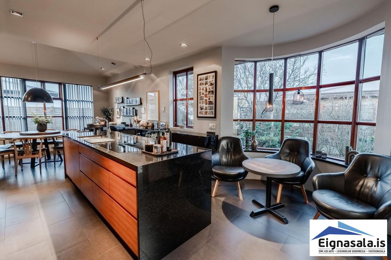 Opið og bjart alrými með parketgólfi og gólfhita frá 2008. Stórir gluggar og gott rými fyrir setu- og sjónvarpsrými.