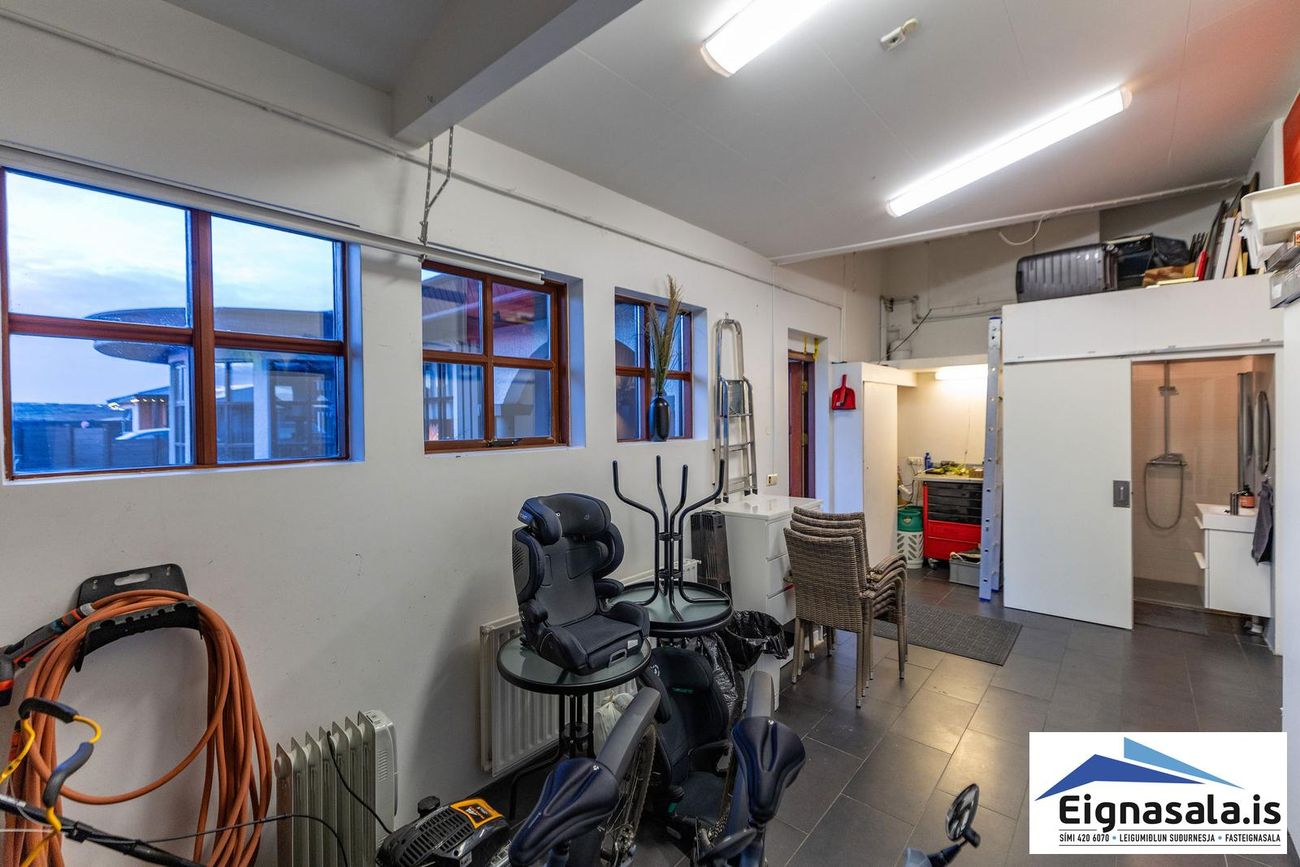Bílskúr hægt að breyta í auka svefnherbergi, vinnuaðstöðu, gestarými eða unglingaíbúð.
