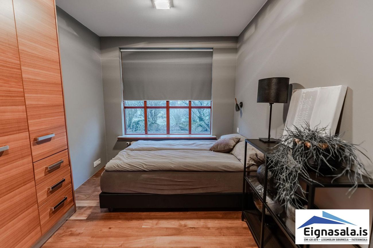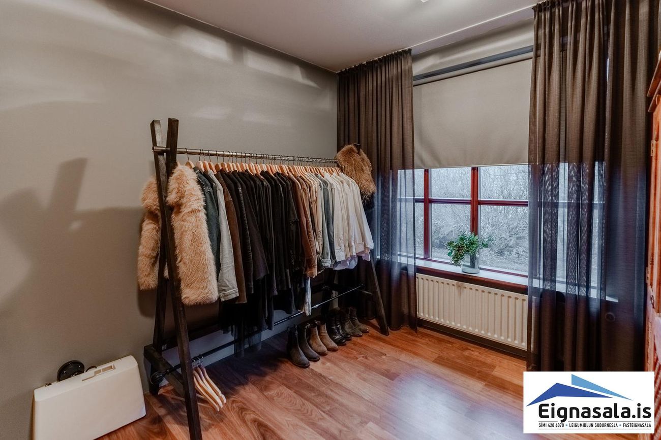 Fimm svefnherbergi: Hjónaherbergi með sér baðherbergi, þrjú önnur með góðum fataskápum.
