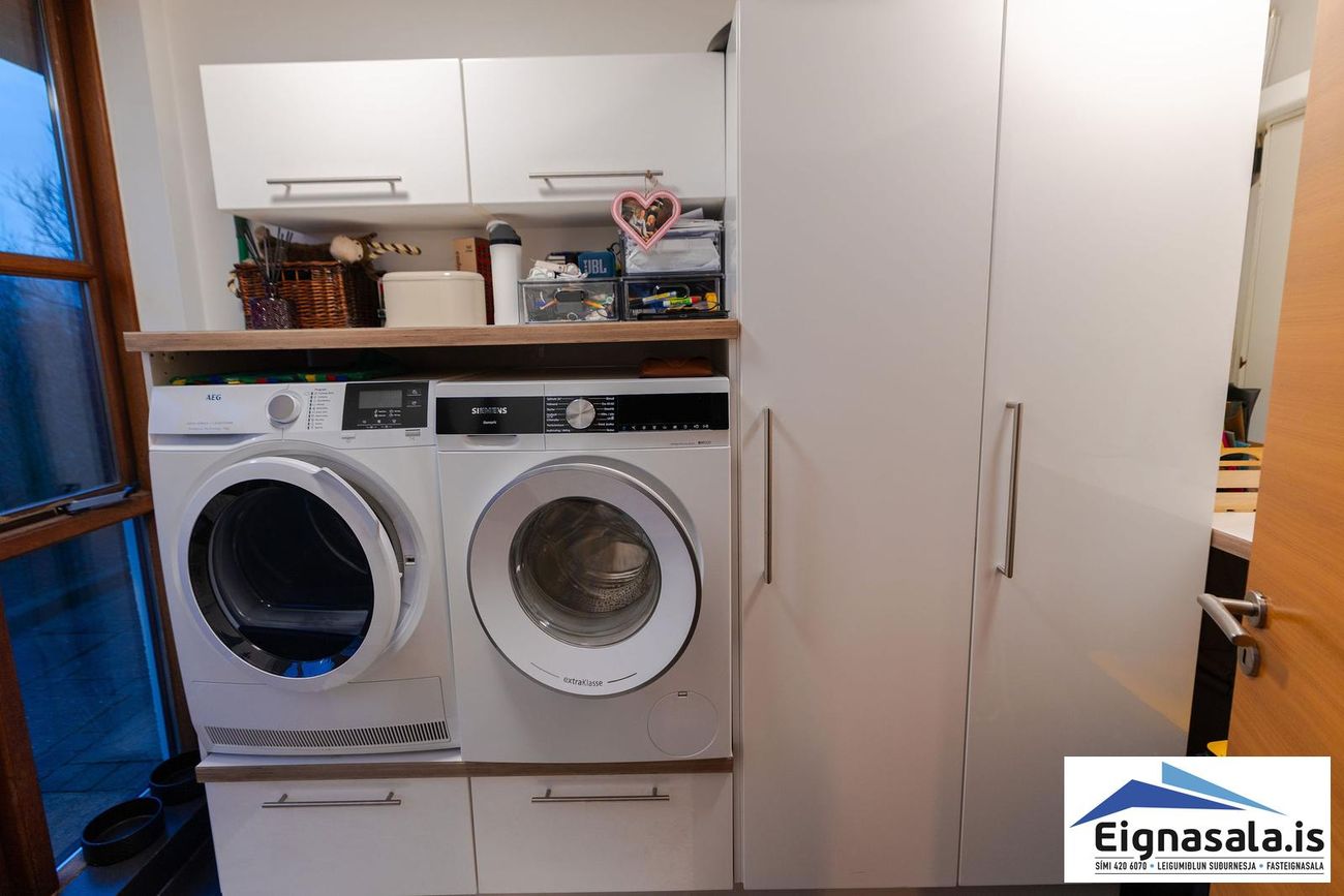 Bílskúr hægt að breyta í auka svefnherbergi, vinnuaðstöðu, gestarými eða unglingaíbúð.