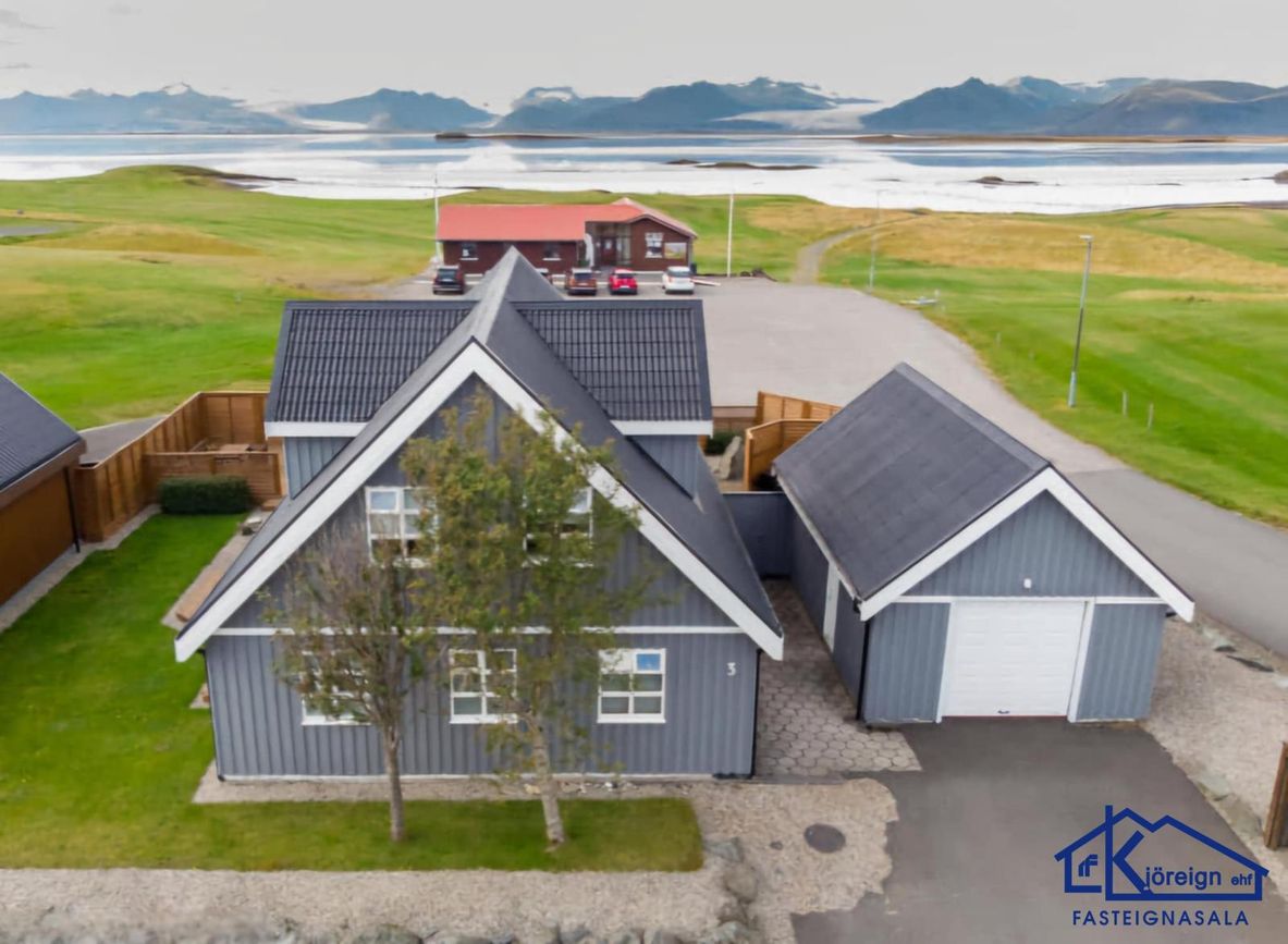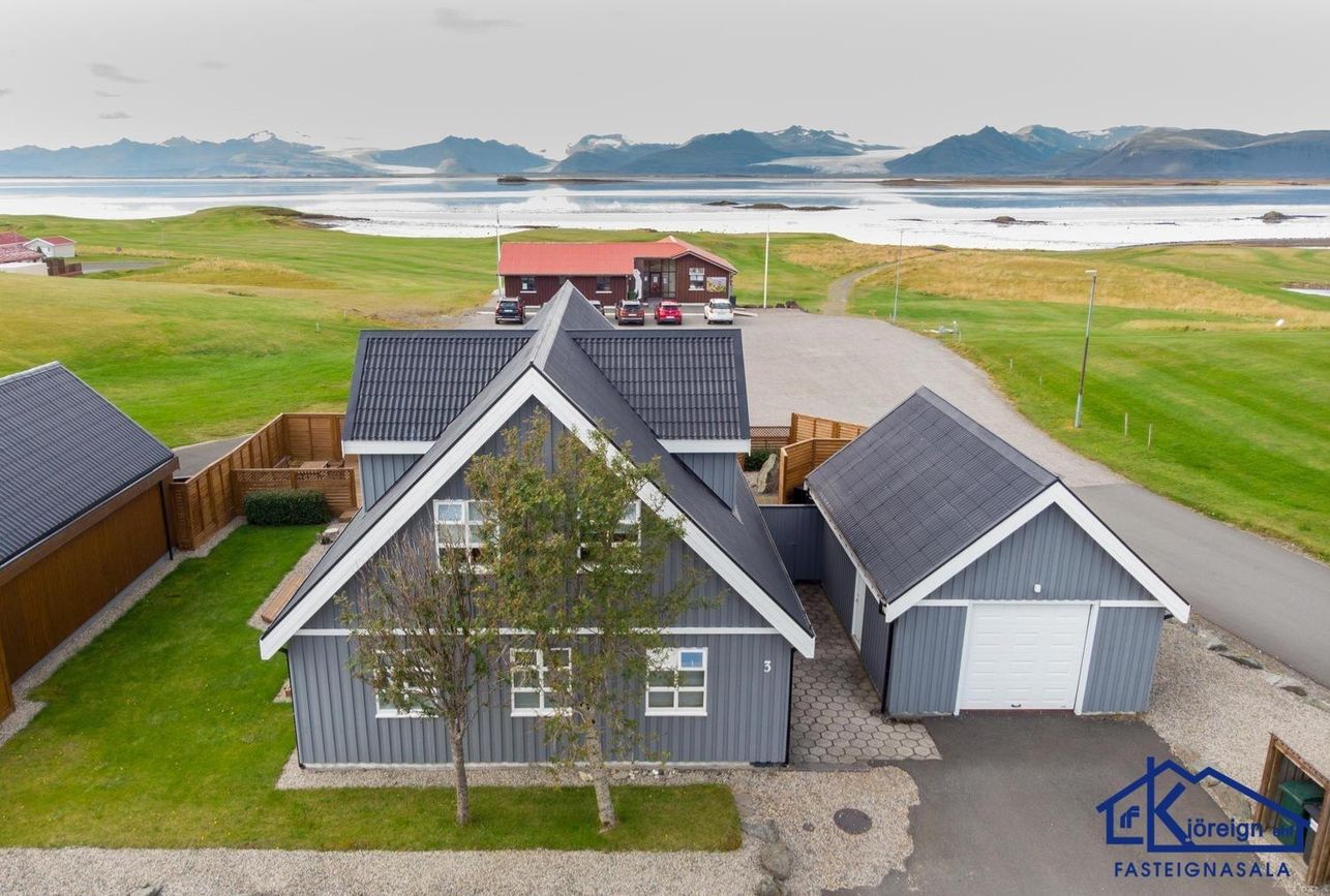 Í rólegu hverfi nálægt Silfurnesgolfvelli með fjallahorfandi útsýni yfir fjörðinn og jökla.