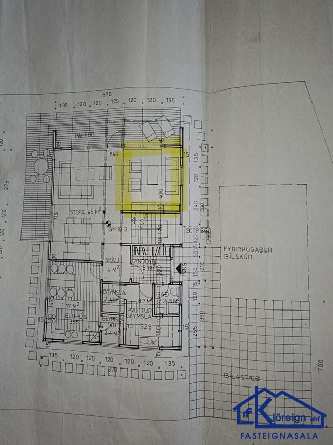Steyttur bílskúr með rafmagni, steyptu gólfi og einangruðu lofti. Vatn og rafmagn til staðar.