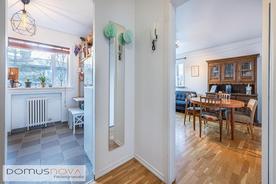 Ath. gólfefni og innréttingar eru í eldri kantinum og þarfnast endurnýjunnar.