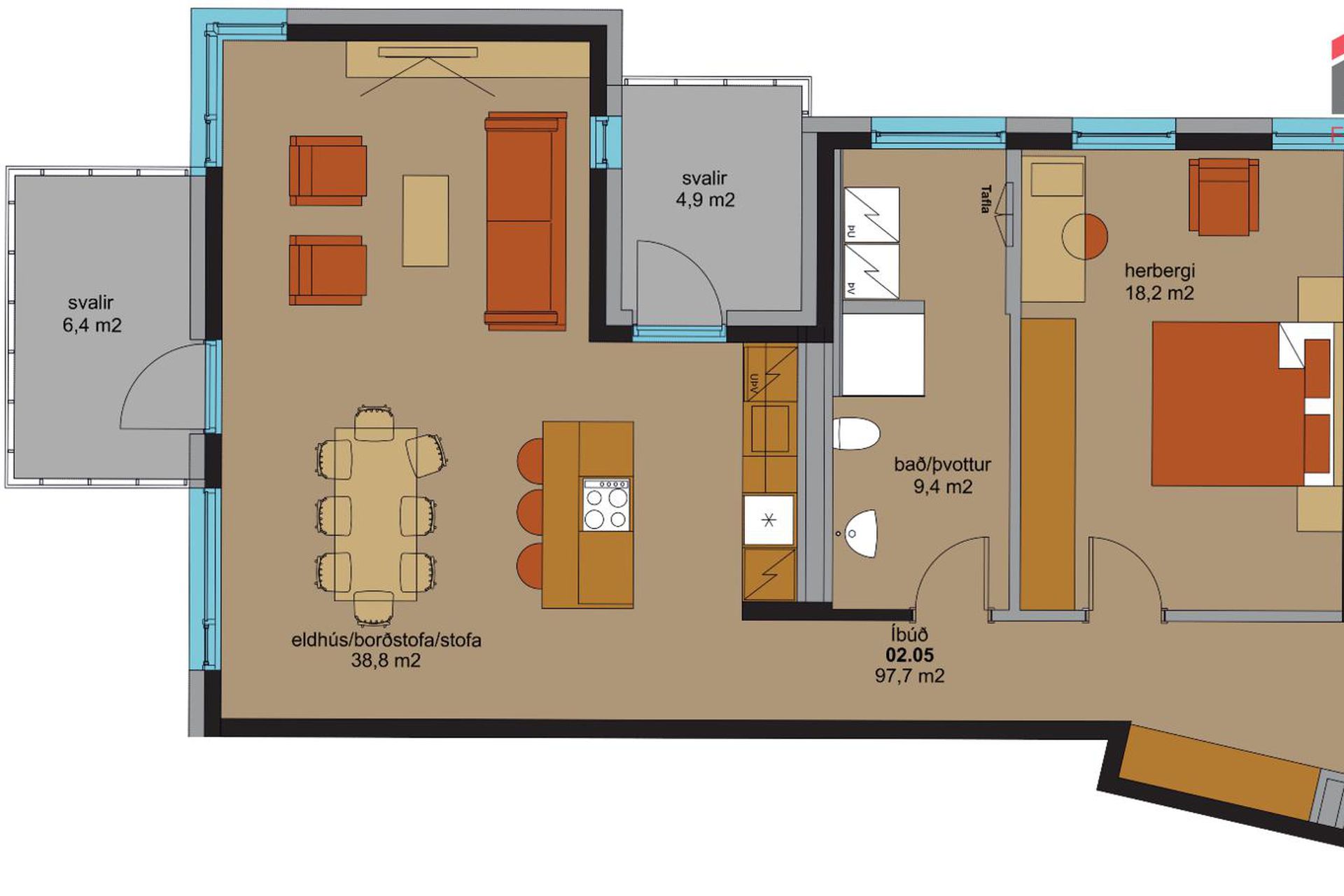 | 2 | 105,90 m² | 62.900.000 kr. 31. október 2021 | 62.900.000 kr. 15. desember 2021 |