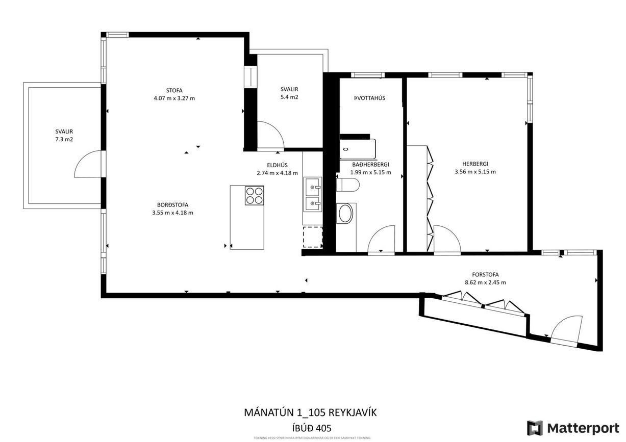 | 2 | 104,90 m² | 75.900.000 kr. 30. ágúst 2022 | 74.000.000 kr. 25. október 2022 |