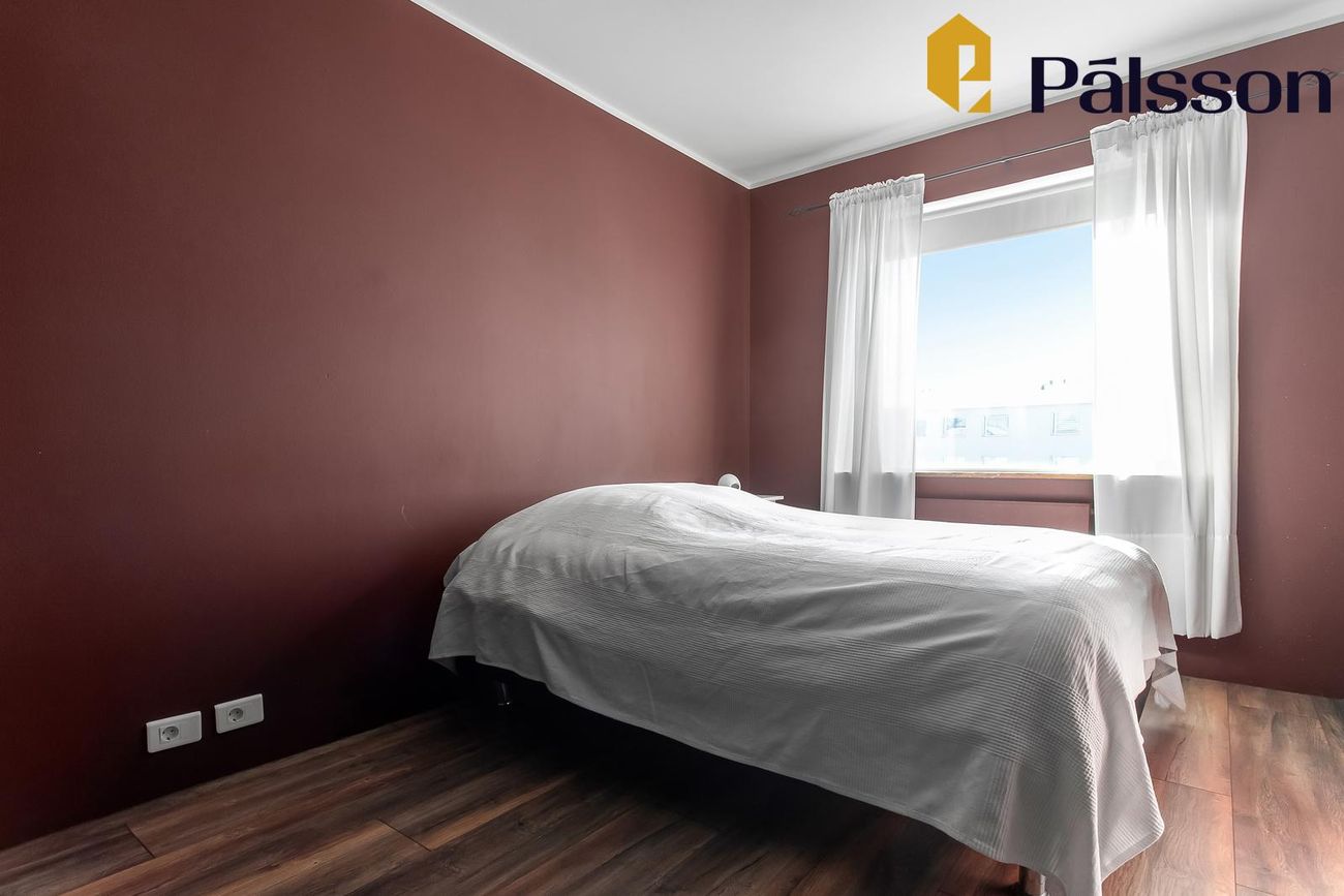 Svefnherbergi: Parket á gólfi, rúmgóður skápur.
