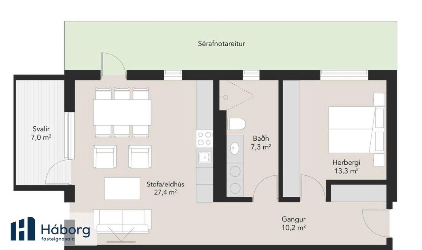 | 2 | 66,50 m² | 68.500.000 kr. 8. október 2025 | 67.500.000 kr. 4. nóvember 2025 |