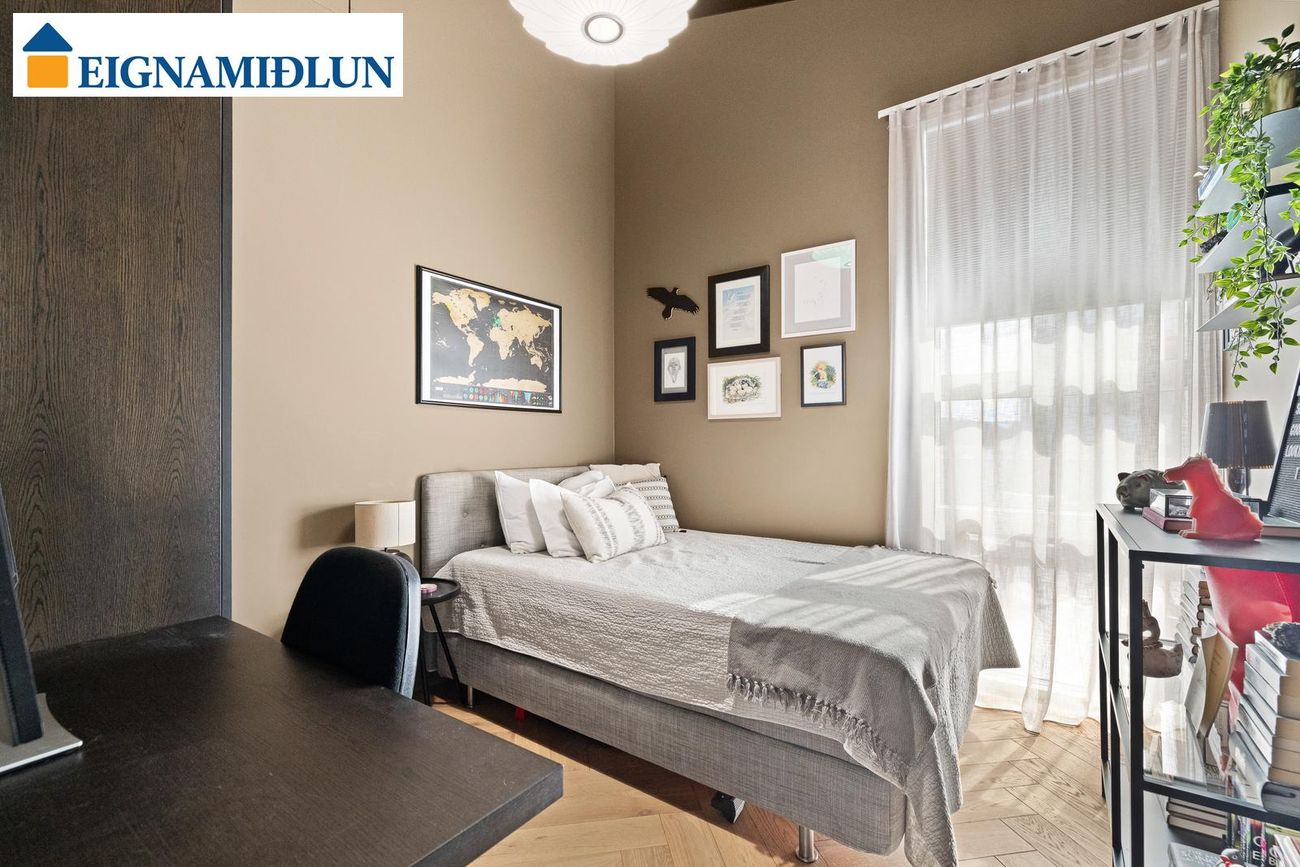 Svefnherbergi: Herbergin eru þrjú. Góðir fataskápar í barnaherbergjum. Hjónasvíta er með miklu skápaplássi og baðherbergi. Parket er á gólfi í svefnherbergjum.