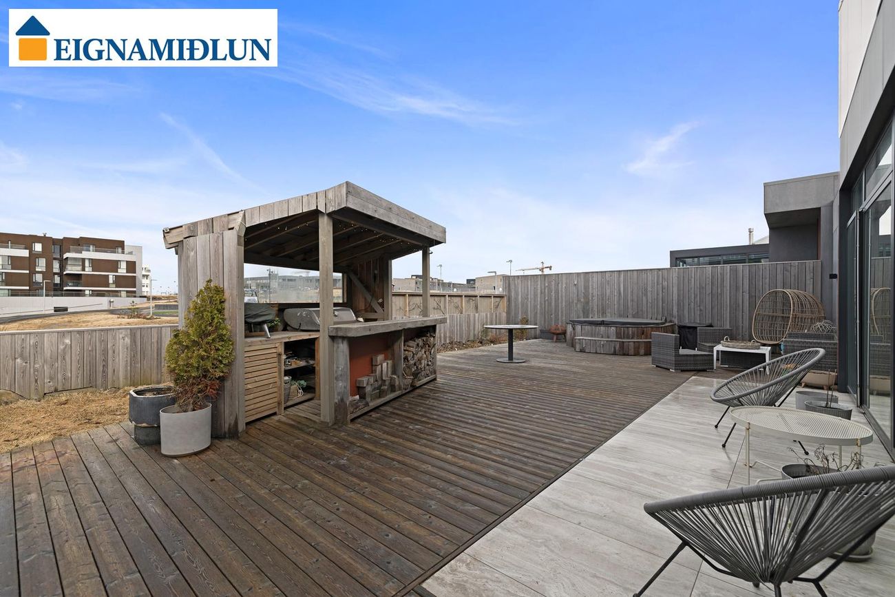 Mikil lofthæð er í húsinu og stórir gluggar út í bakgarð. Hljóðloft er í alrými sem veitir góða hljóðvist.Staðsetning er mjög góð við útivistarsvæðin Heiðmörk, Vífilstaðavatn, Urriðavatn og golfvöllinn Odd/Urriðavöllur.