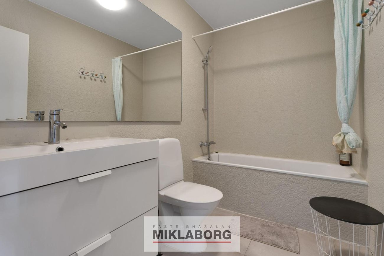 Sérgeymsla og sameiginleg hjólageymsla, þvottahús og þurrkherbergi eru í kjallara.